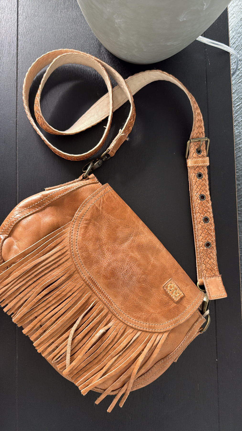 A fun fringe leather crossbody bag, the Eastend is a compact, easy, breezy handmade accessory every young lady should own. Bring this bohemian-inspired leather purse into rotation and let the good times roll.