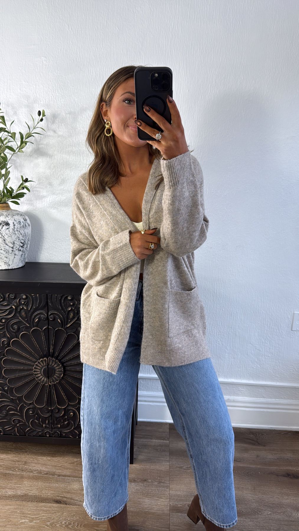 Coziest Hooded Cardi, Taupe