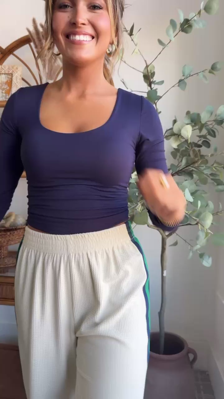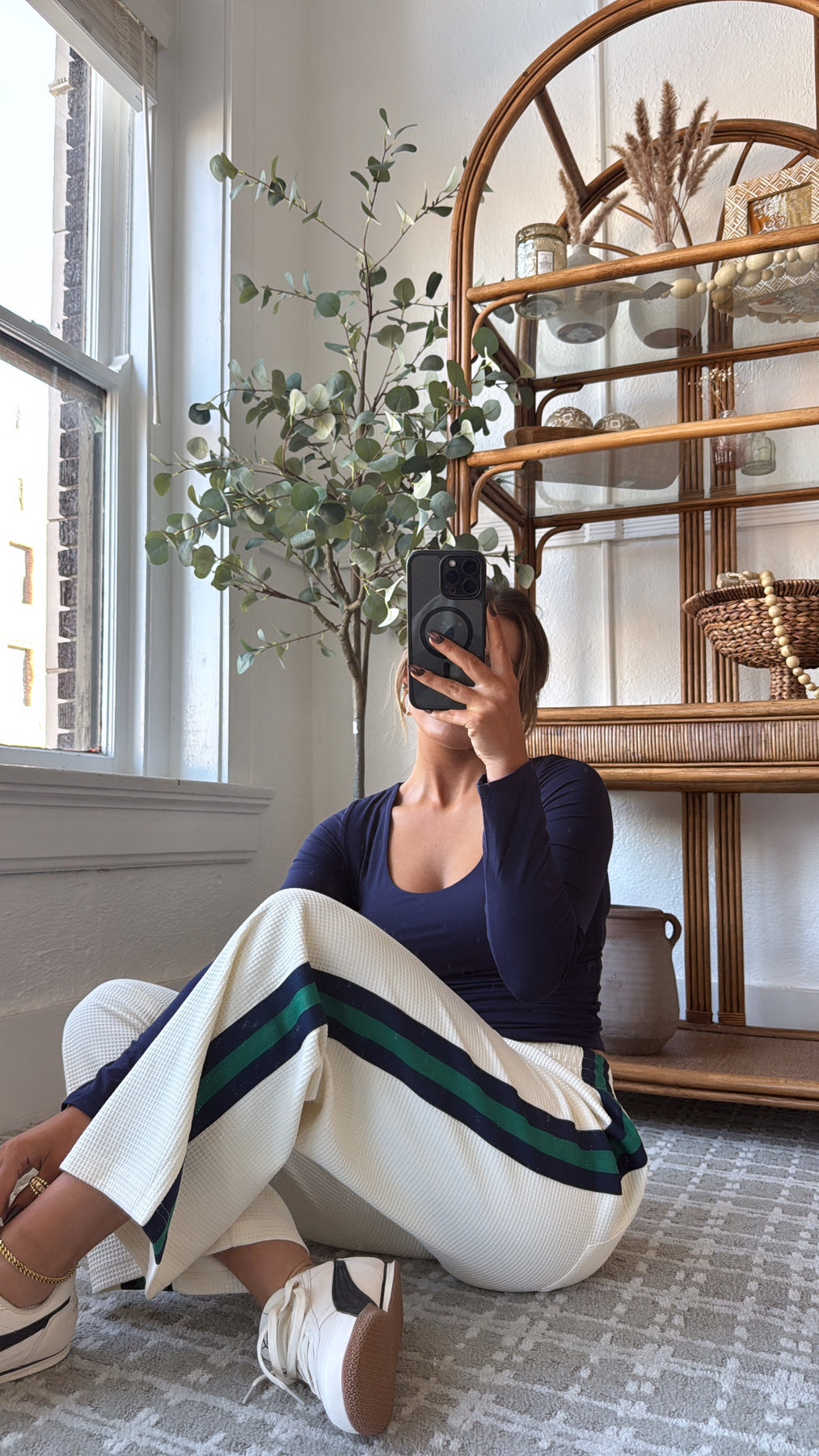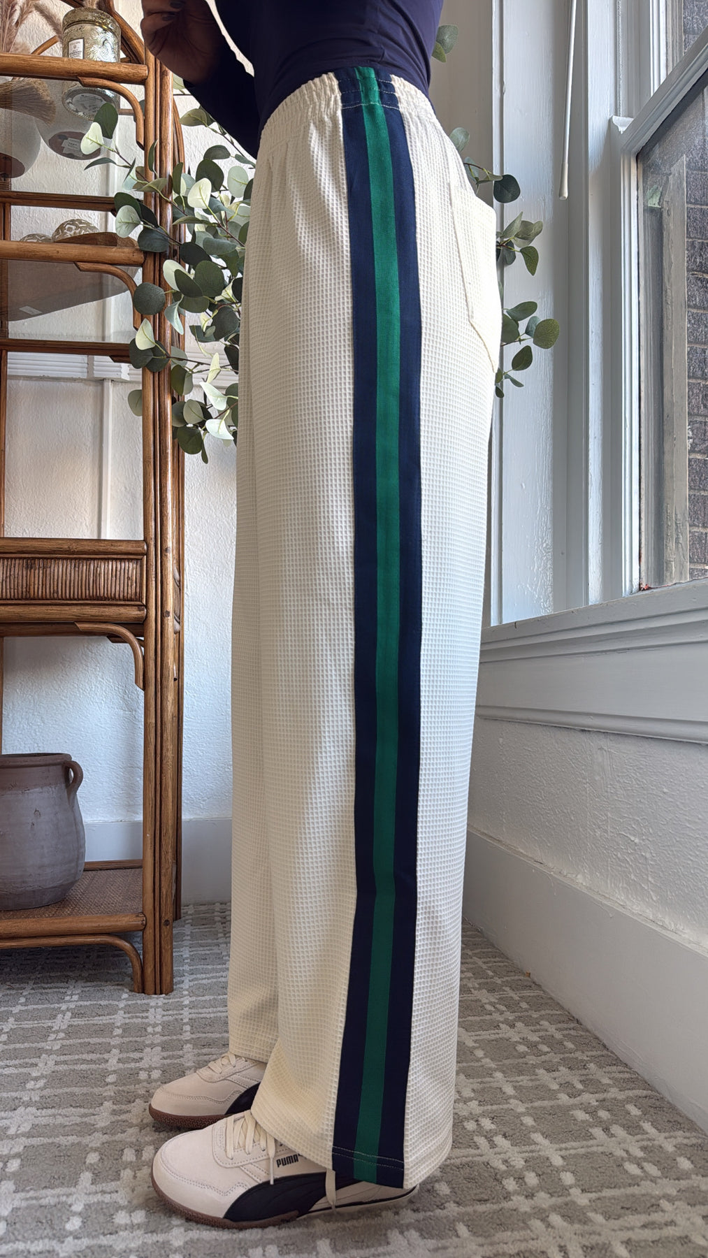 Take on edge - the Day Dream Waffle Knit Pant is featured in a true-to-size fit met with striped detailing. We love the trendy energy that this piece radiates.
