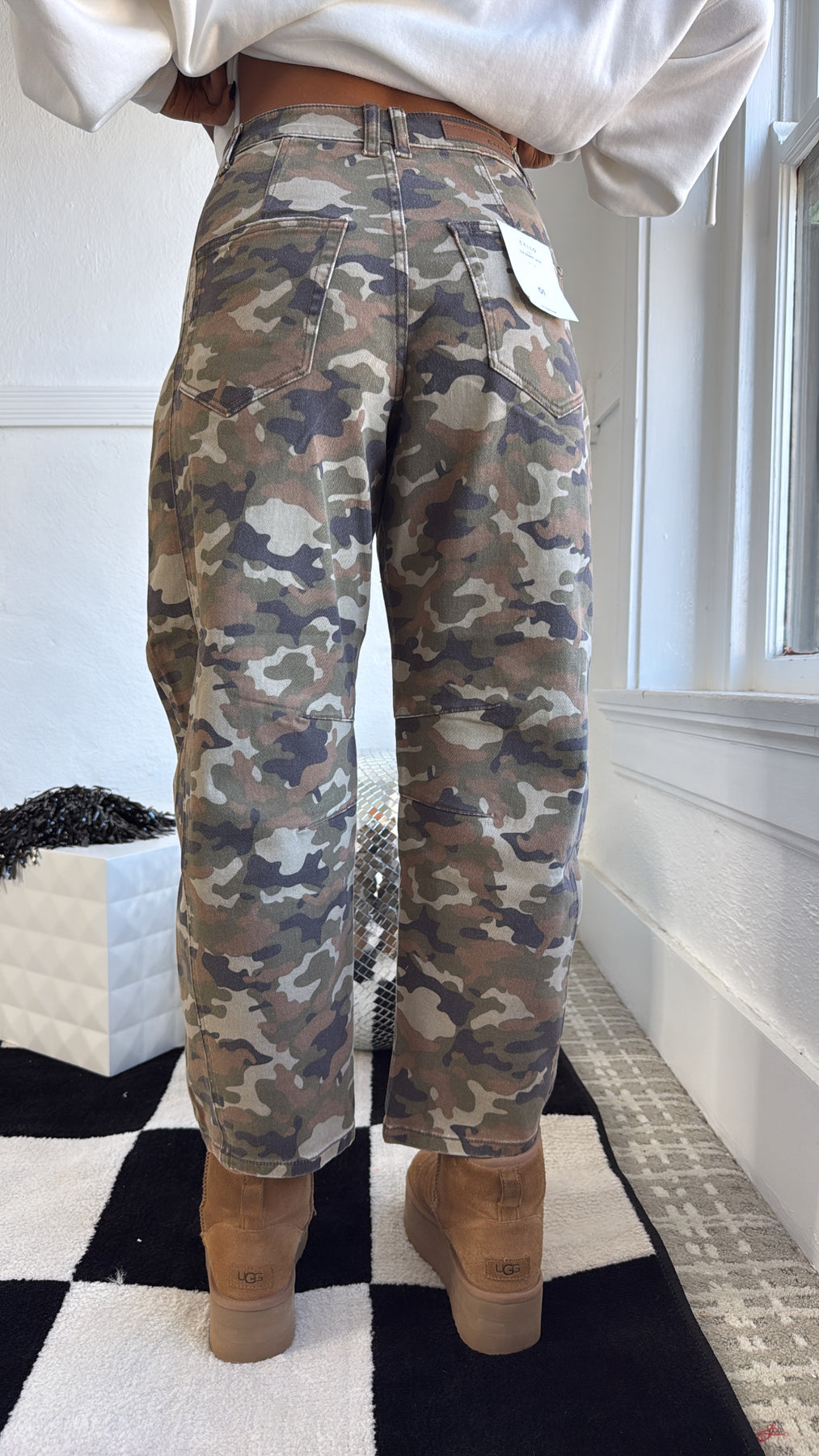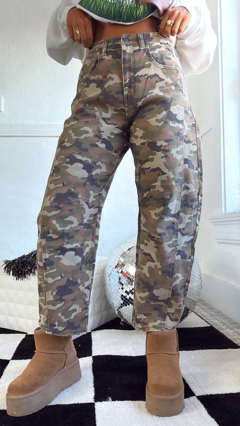 Step out in style with the Gone Rouge Camo Washed Barrel Jeans! Featuring a mid-rise and trendy barrel leg, these jeans blend comfort with a bold camo print for a look that’s both fierce and fun. Perfect for turning heads while keeping your vibe effortlessly cool!
