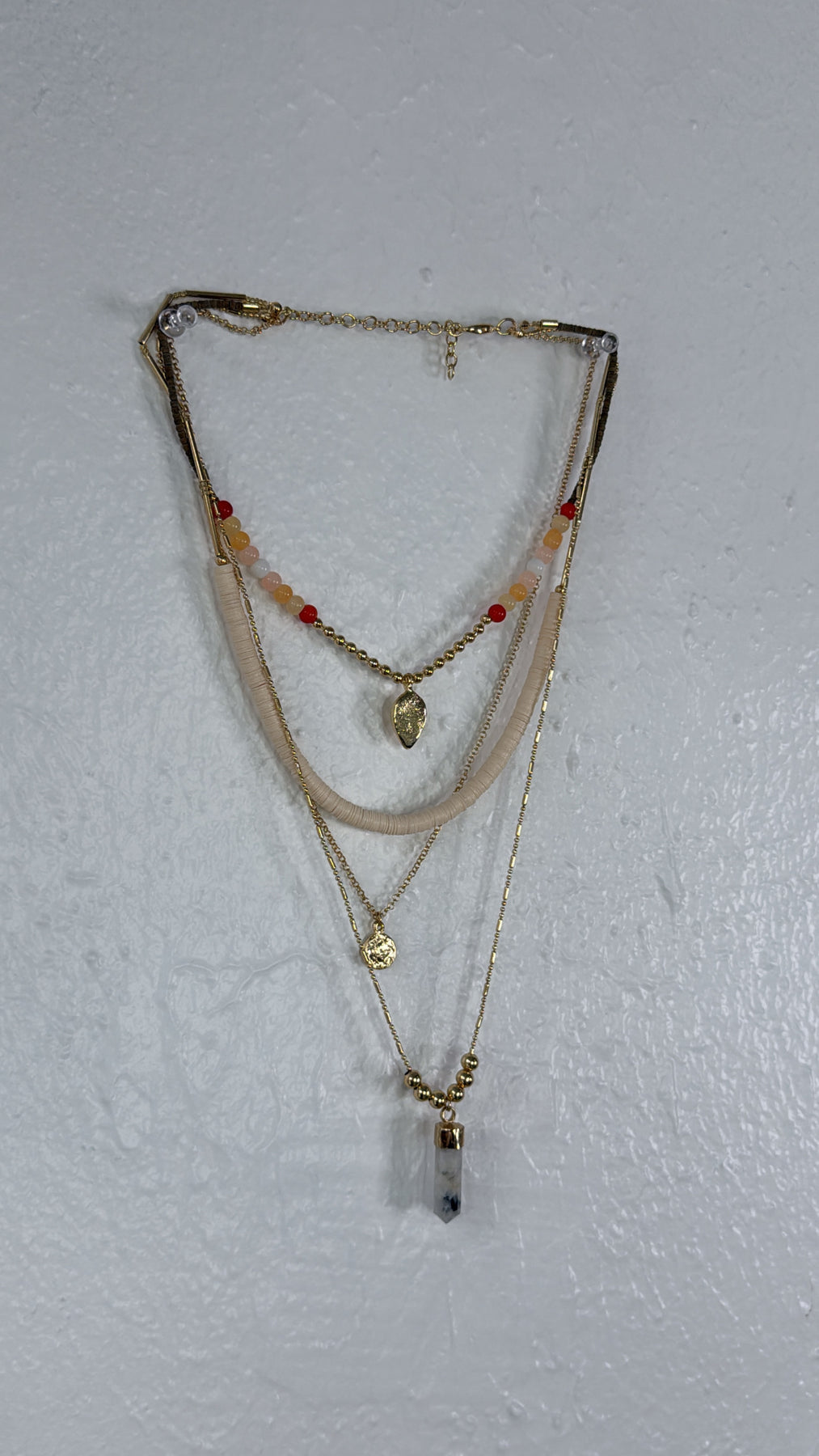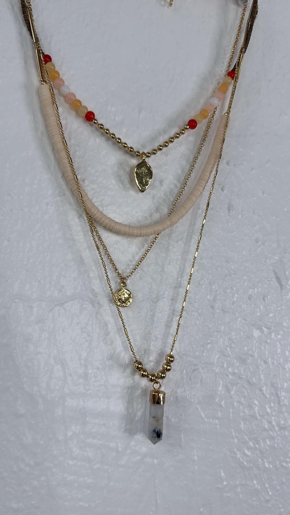 Elevate your everyday style with the Halo Link Layered Necklace — a stunning blend of boho energy and modern elegance. This layered trio features radiant gold chains, earthy gemstone beads, and a statement crystal pendant for a touch of natural magic. Designed for a bold, layered look or separately for effortless versatility, this set adds a warm, sun-kissed glow to any outfit. Perfect with knits, flowy blouses, or your favorite date-night dress.