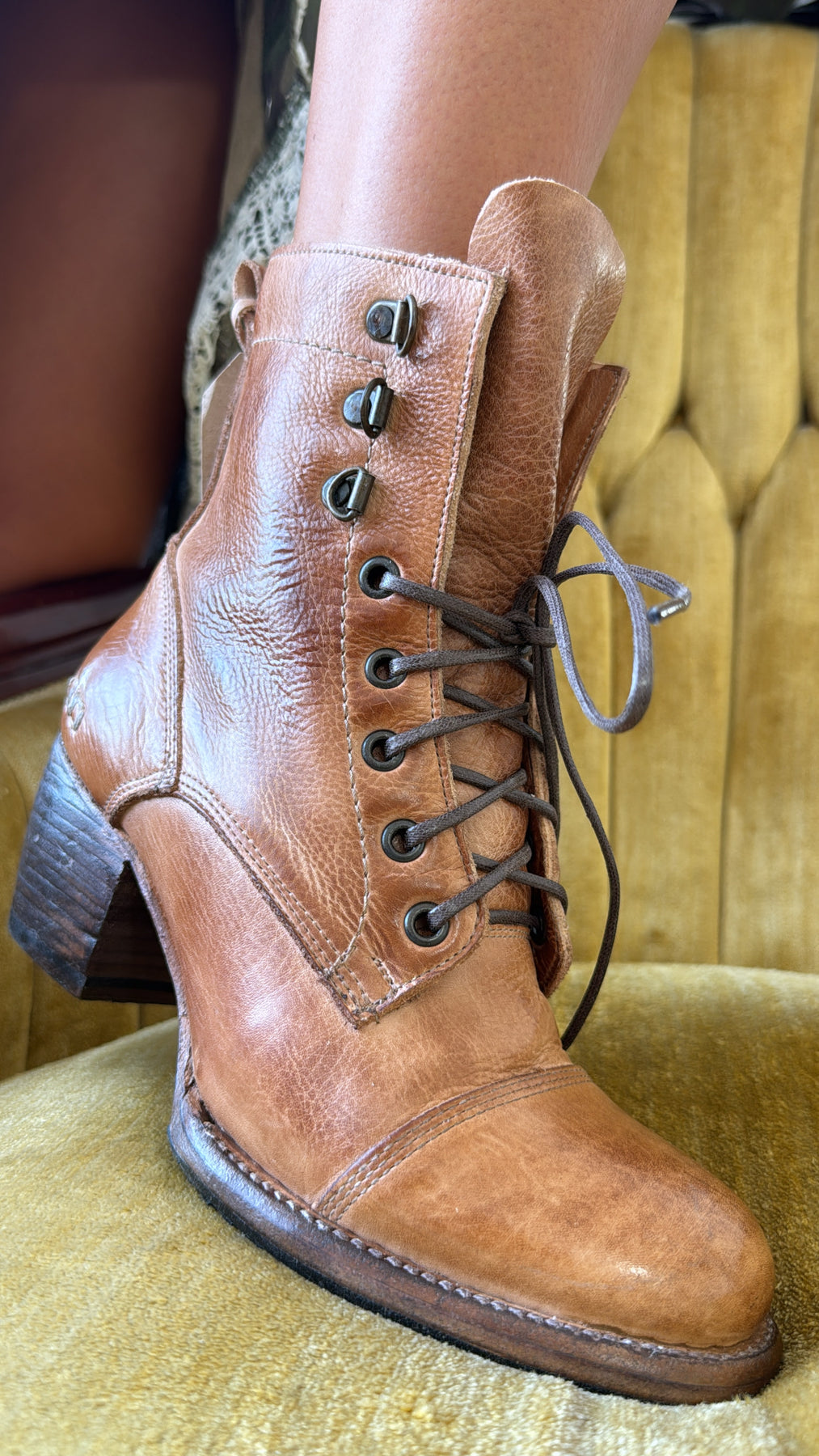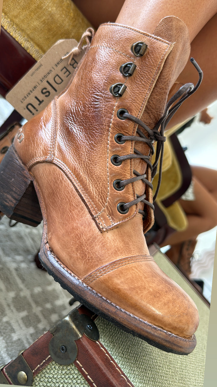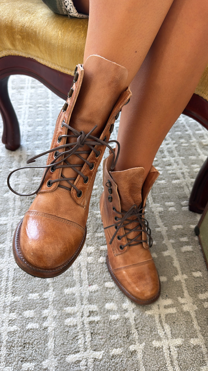 Dress to impress in JUDGEMENT, a stunning leather lace-up boot. Smoke Grey Lux is a fun finish which offers a peep of brown natural leather through a crackle effect finish. JUDGEMENT features a cap toe, wearable block heel, inside zipper and contrast stitching. You will turn heads wherever you go, we promise.