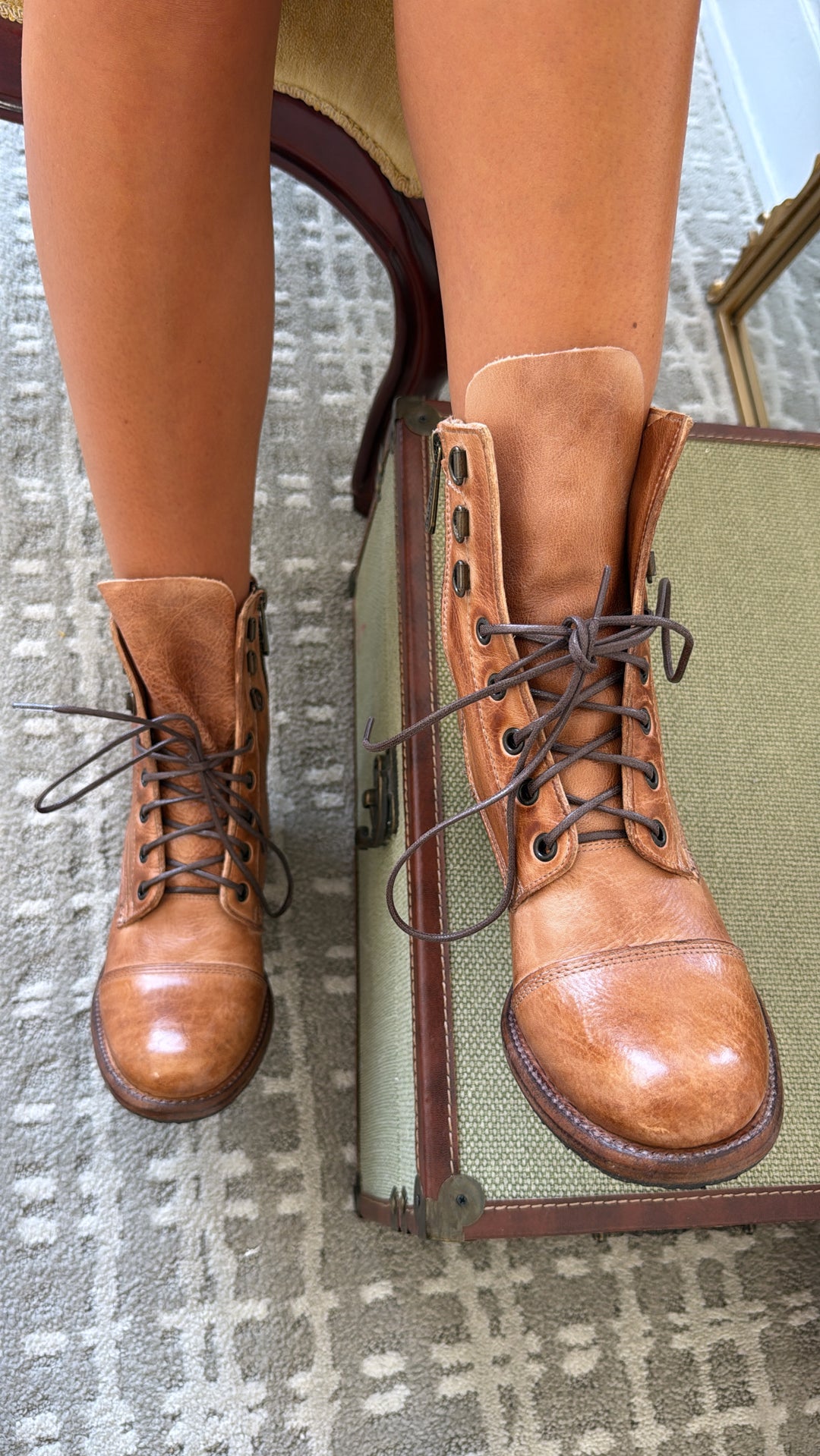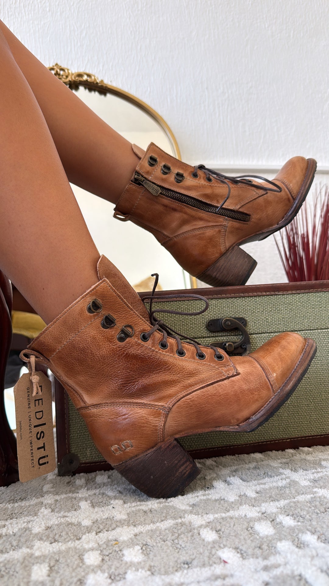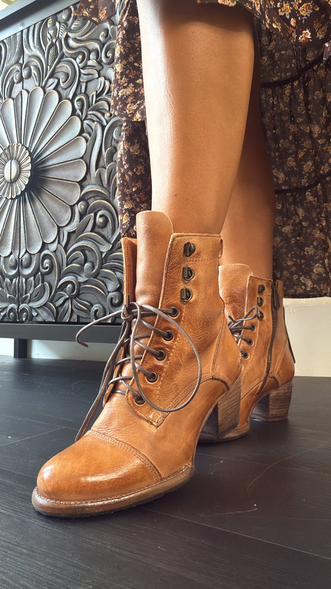 Dress to impress in JUDGEMENT, a stunning leather lace-up boot. Smoke Grey Lux is a fun finish which offers a peep of brown natural leather through a crackle effect finish. JUDGEMENT features a cap toe, wearable block heel, inside zipper and contrast stitching. You will turn heads wherever you go, we promise.