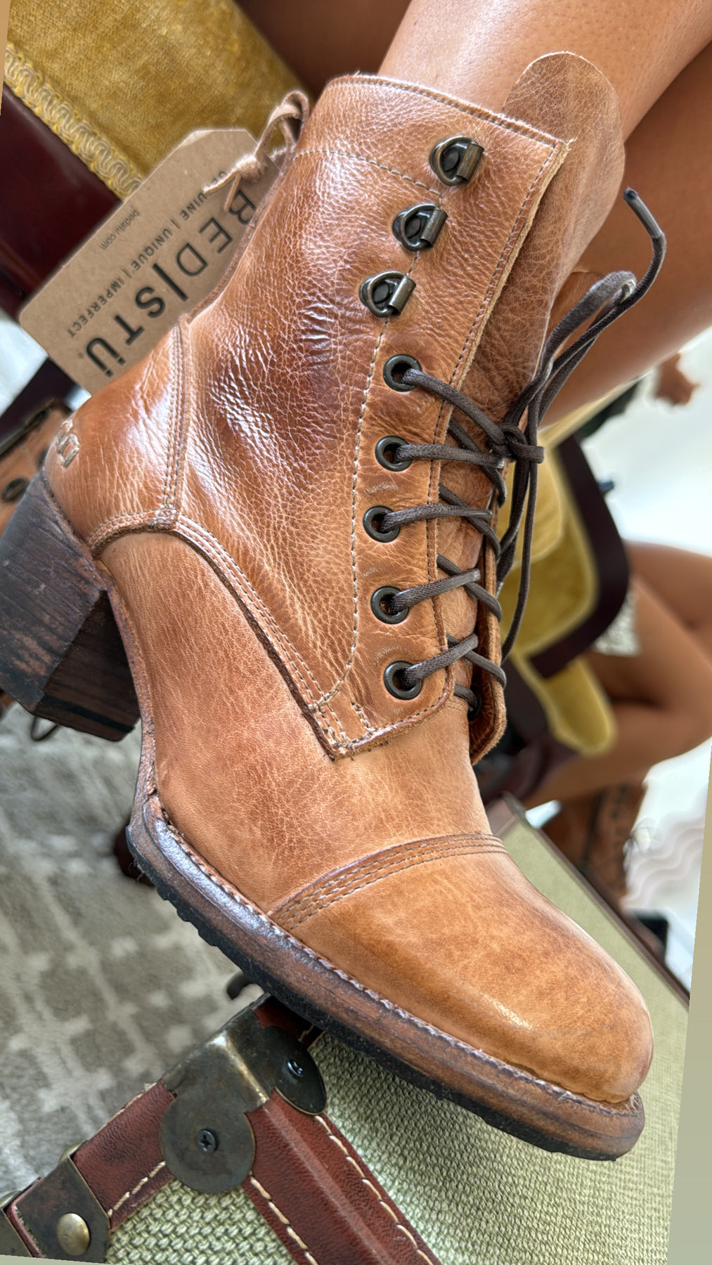In a new leather boot/shoe, you should have roughly 1/8 inch slip in your heel and a tight, snug feeling of the leather across the top of your foot. Through wear, the heel structure of the boot will soften and eliminate the slipping feeling, and the leather across the top of your foot will stretch and conform to the shape of your instep. It is important that a new pair of genuine leather boots be as snug to your foot as possible in order to allow them to stretch to your foot shape. Once you have your new boots on, please remember that it will take time for leather to stretch and conform to your feet. The softer the leather is, the more it stretches. If you’d like to speed up the stretching process, make sure to soften the leather with a good conditioner.