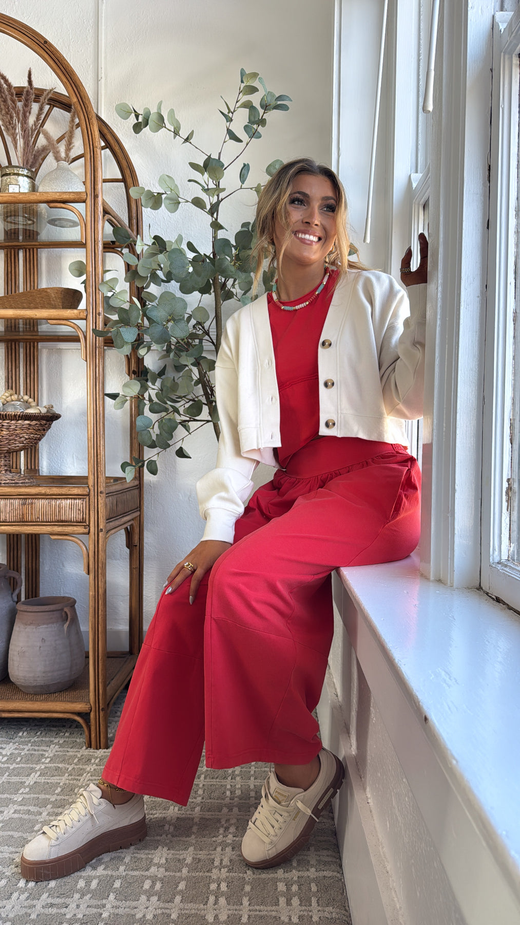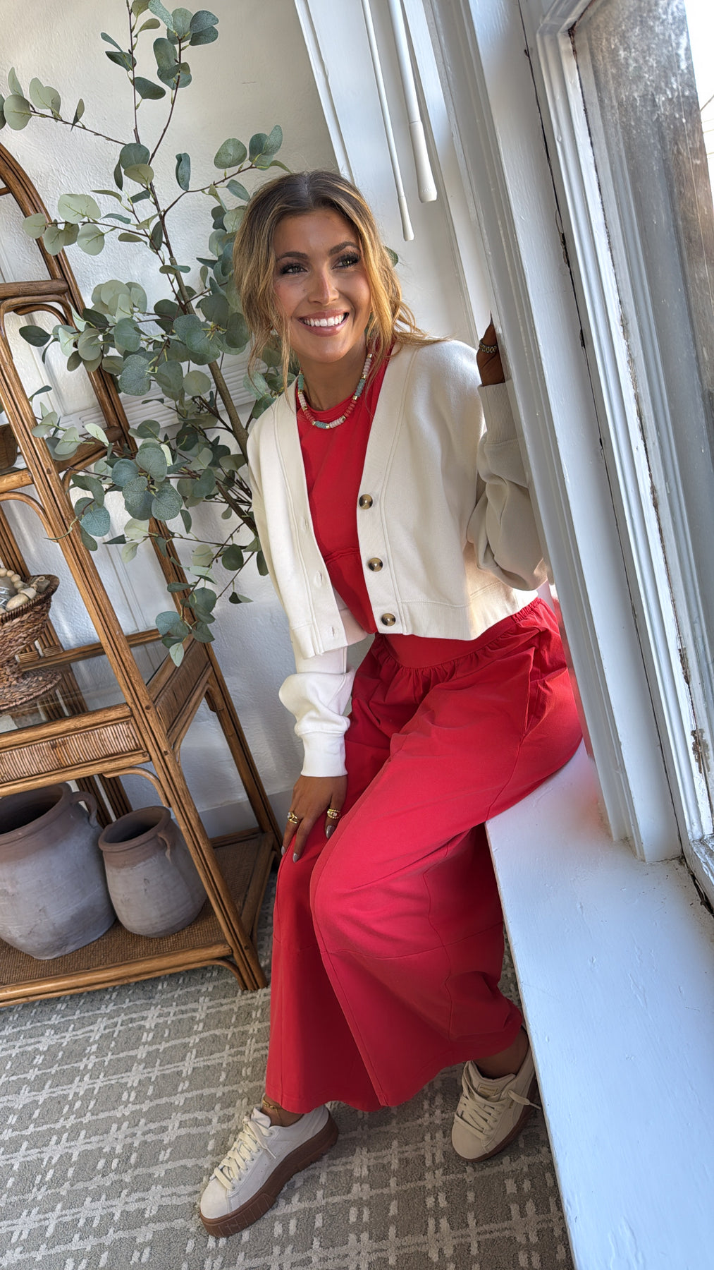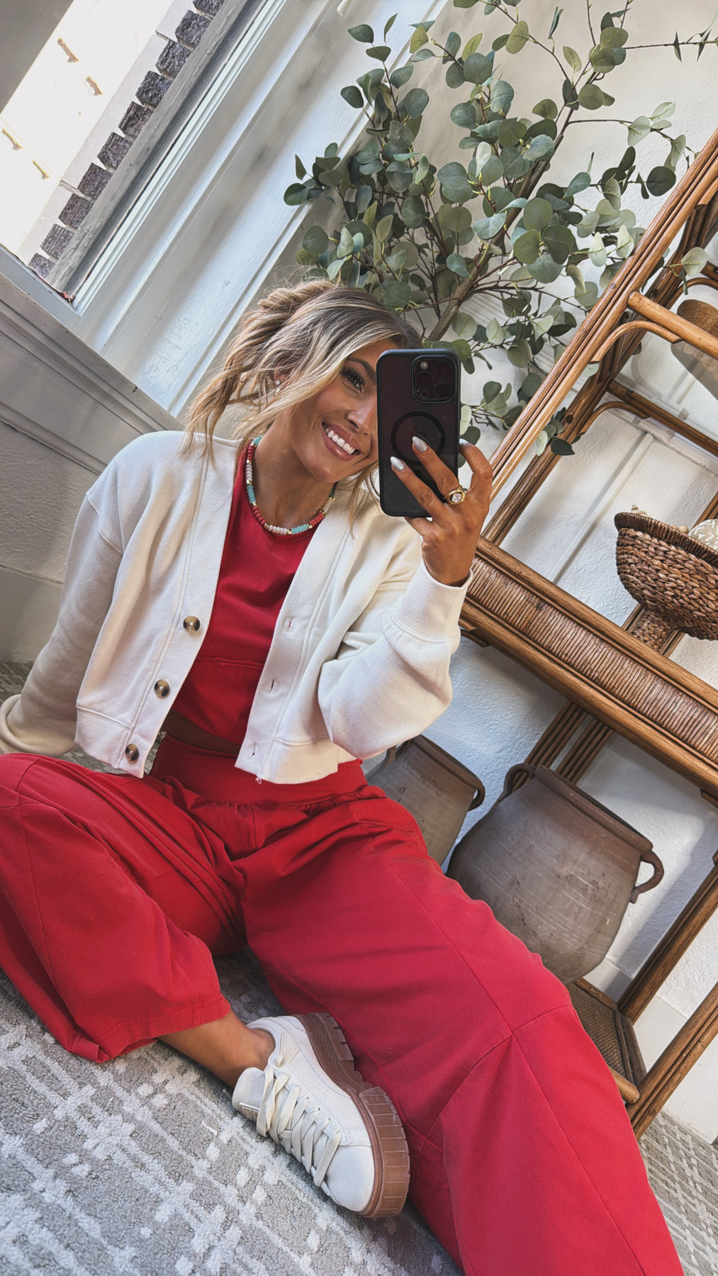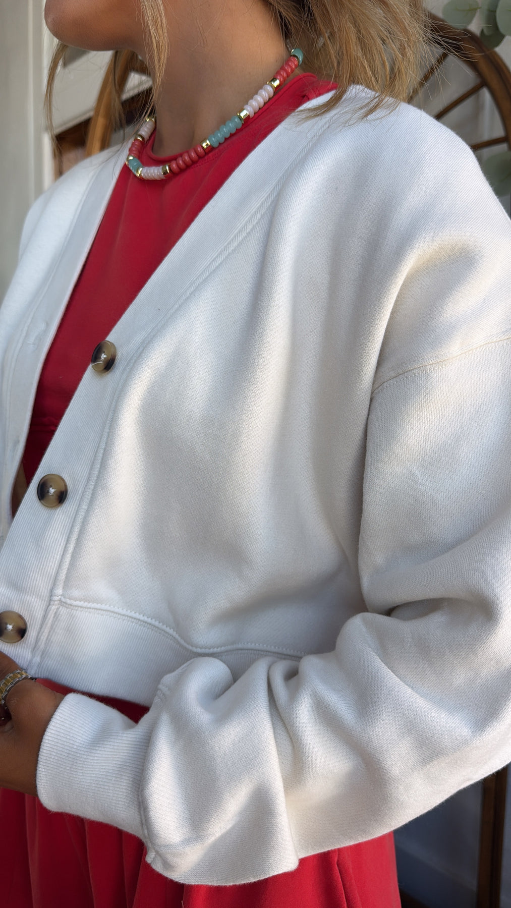 Your new layering essential. The Morning Mist Knit Cardigan features a soft knit feel with a modern cropped silhouette that pairs effortlessly over dresses, tanks, or tees. Designed with bold, oversized buttons and a relaxed fit, it’s the perfect mix of cozy and chic. From casual coffee runs to dressed-up evenings, this versatile piece will be your go-to for polished layering.