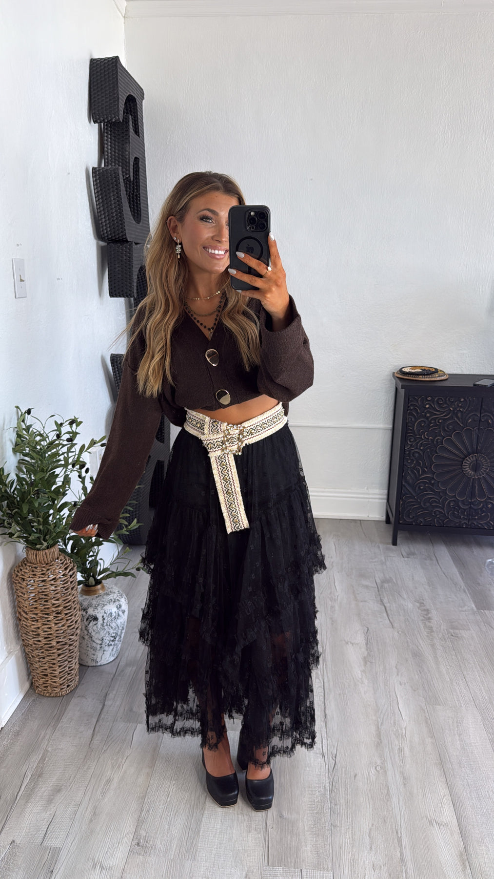 The Whispering Shadows Mesh Skirt is a boho dream. Our favorite mesh skirt is featured in a sheer layered design with a high-rise waistband and whimsical feel! Effortlessly float through the day in this skirt.