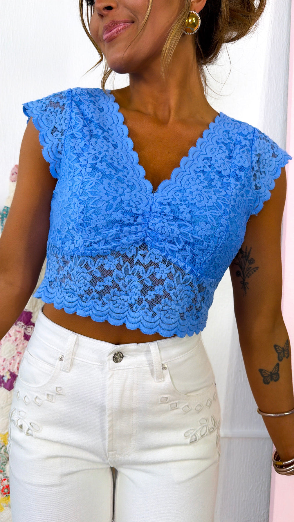 Embrace a romantic vibe with the POL: Whispered Lace Top. This piece effortlessly captures a romantic aesthetic, combining delicate lace with a whimsical lace design.
