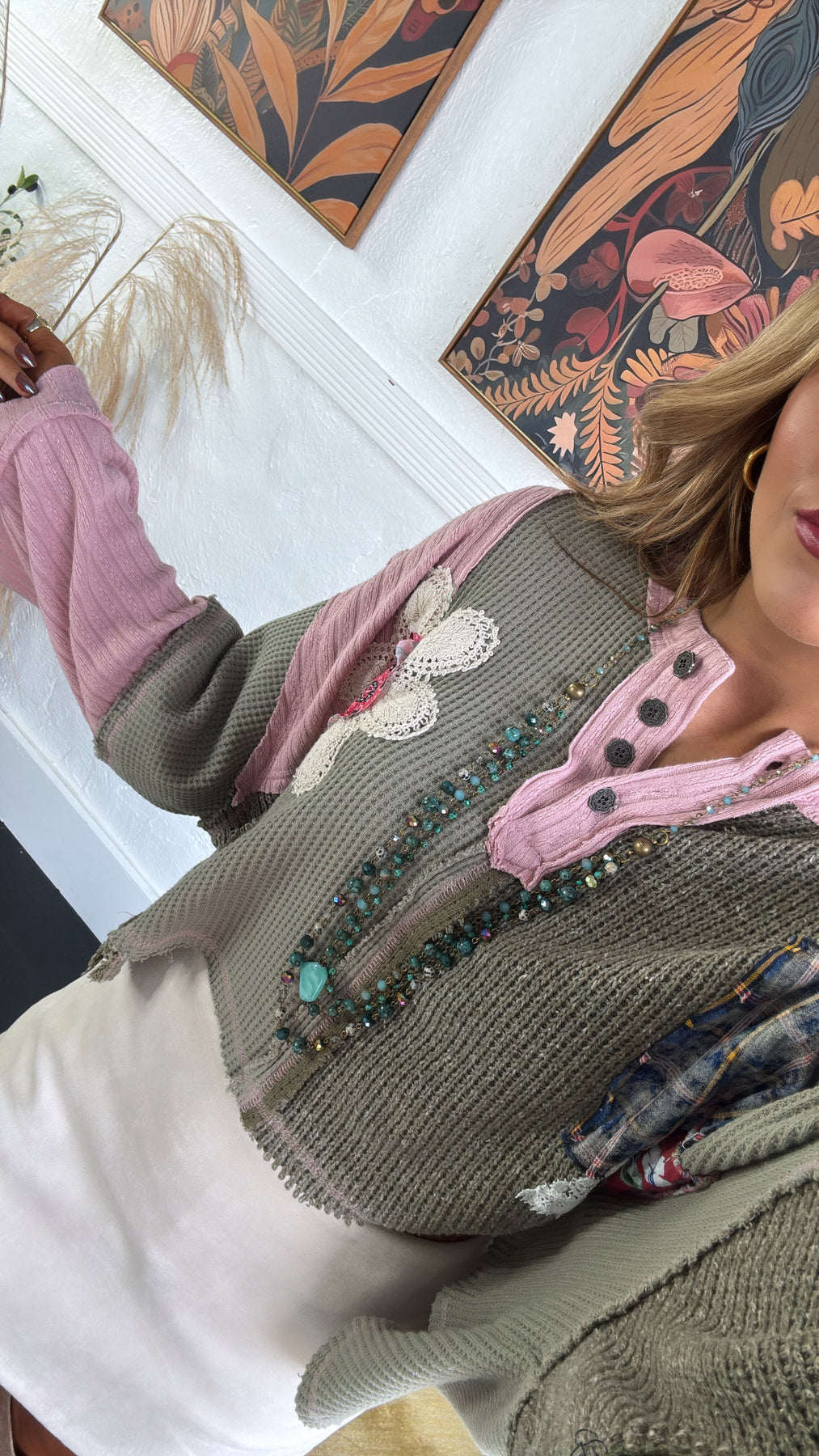 This unique piece of jewelry can be worn 5 different ways! The magnetic closure allows you to adjust this piece to your liking. You can wear it as one long necklace with the bottom piece being 3 layers of beautiful beading. Take the top piece and wear it as a bracelet or a choker necklace. You can wear each piece separately or together to make a 4 layer necklace. Stones may vary in size and texture