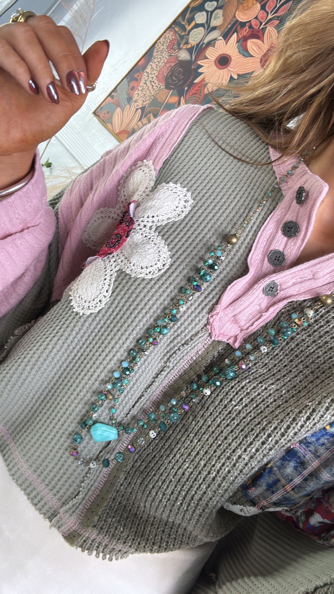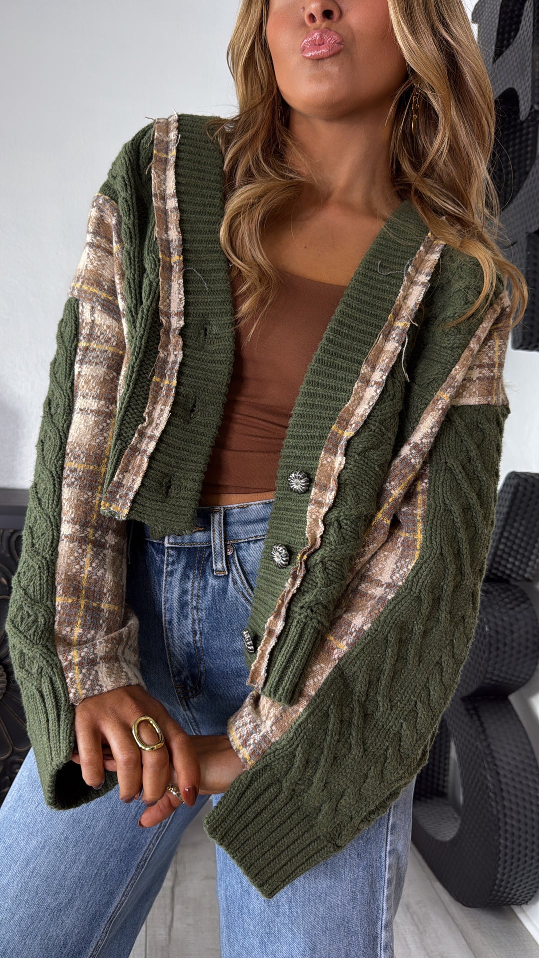 Sweet Impression Patchwork Long Sleeve Top, Olive Multi