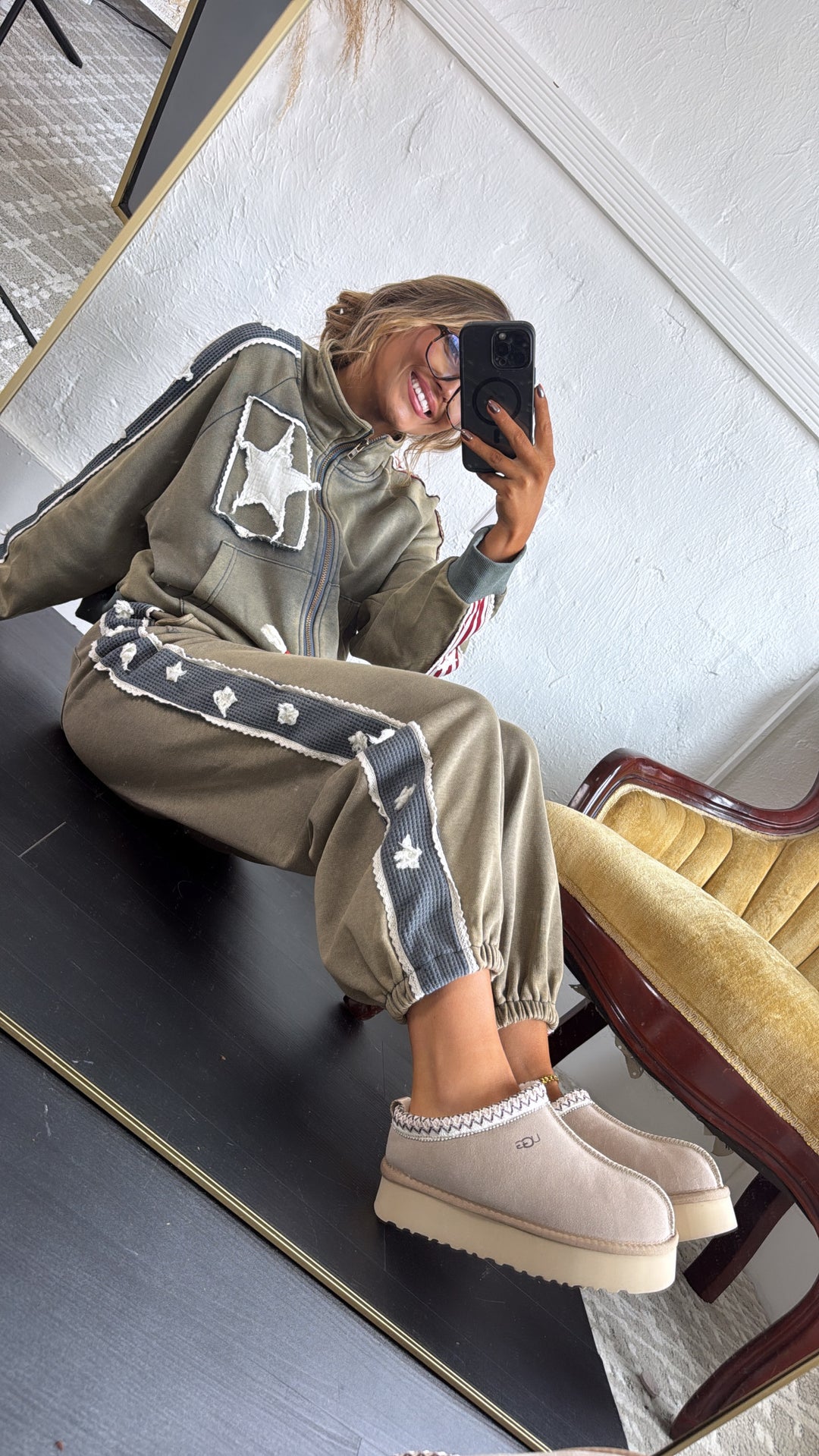 American Dream Patch Zip Up Jacket, Vintage Moss