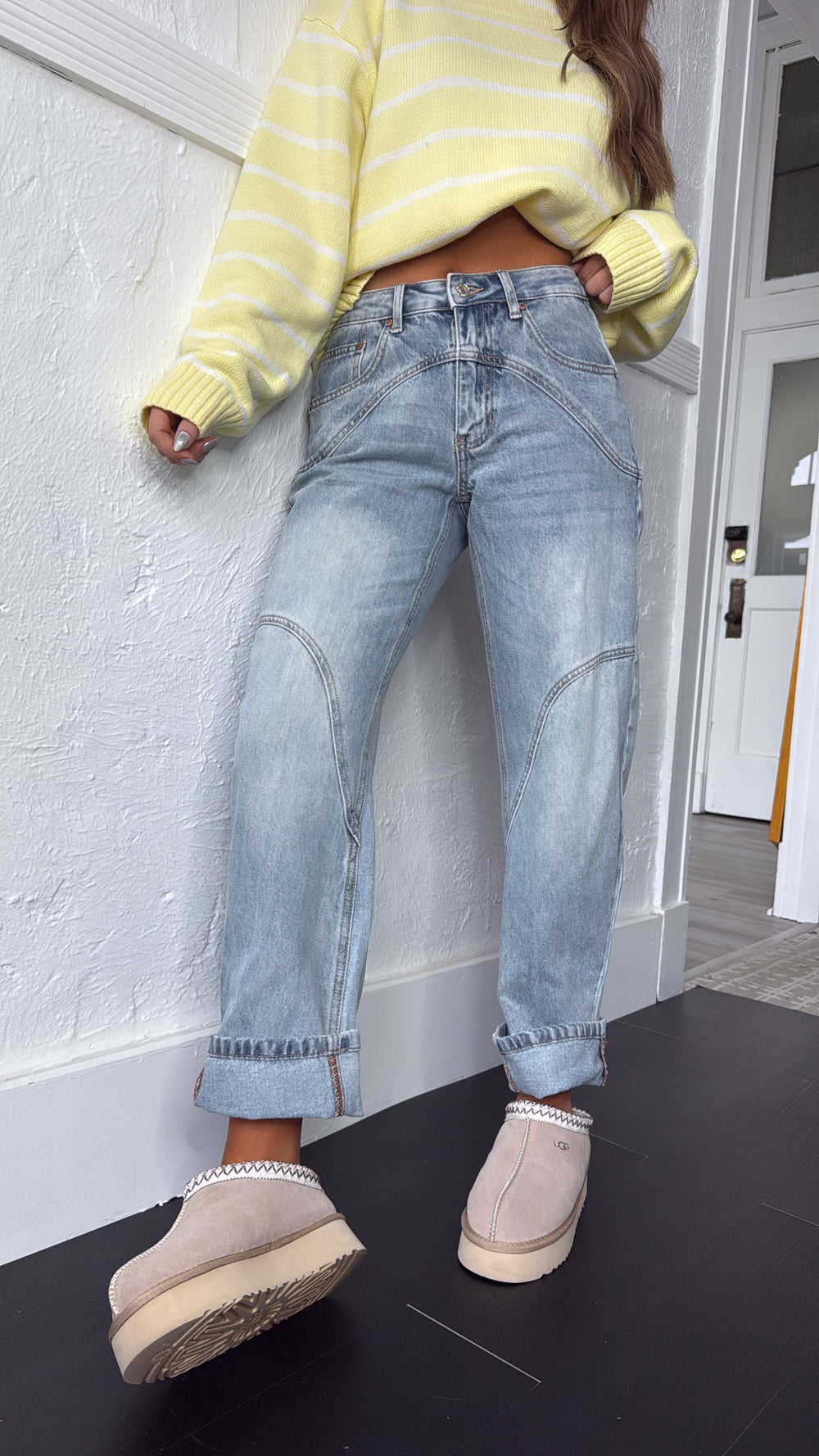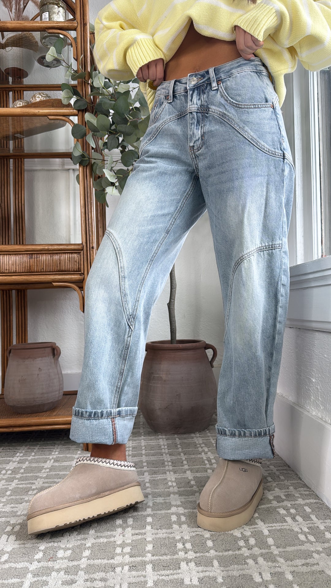 SAIGE: Studio Ready Barrel Jeans, Medium Light