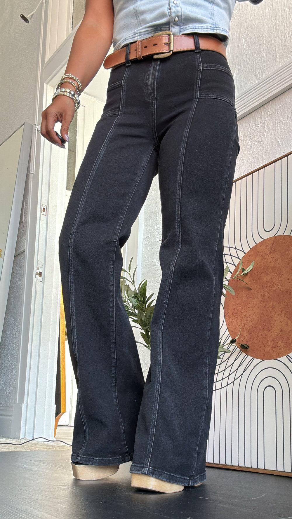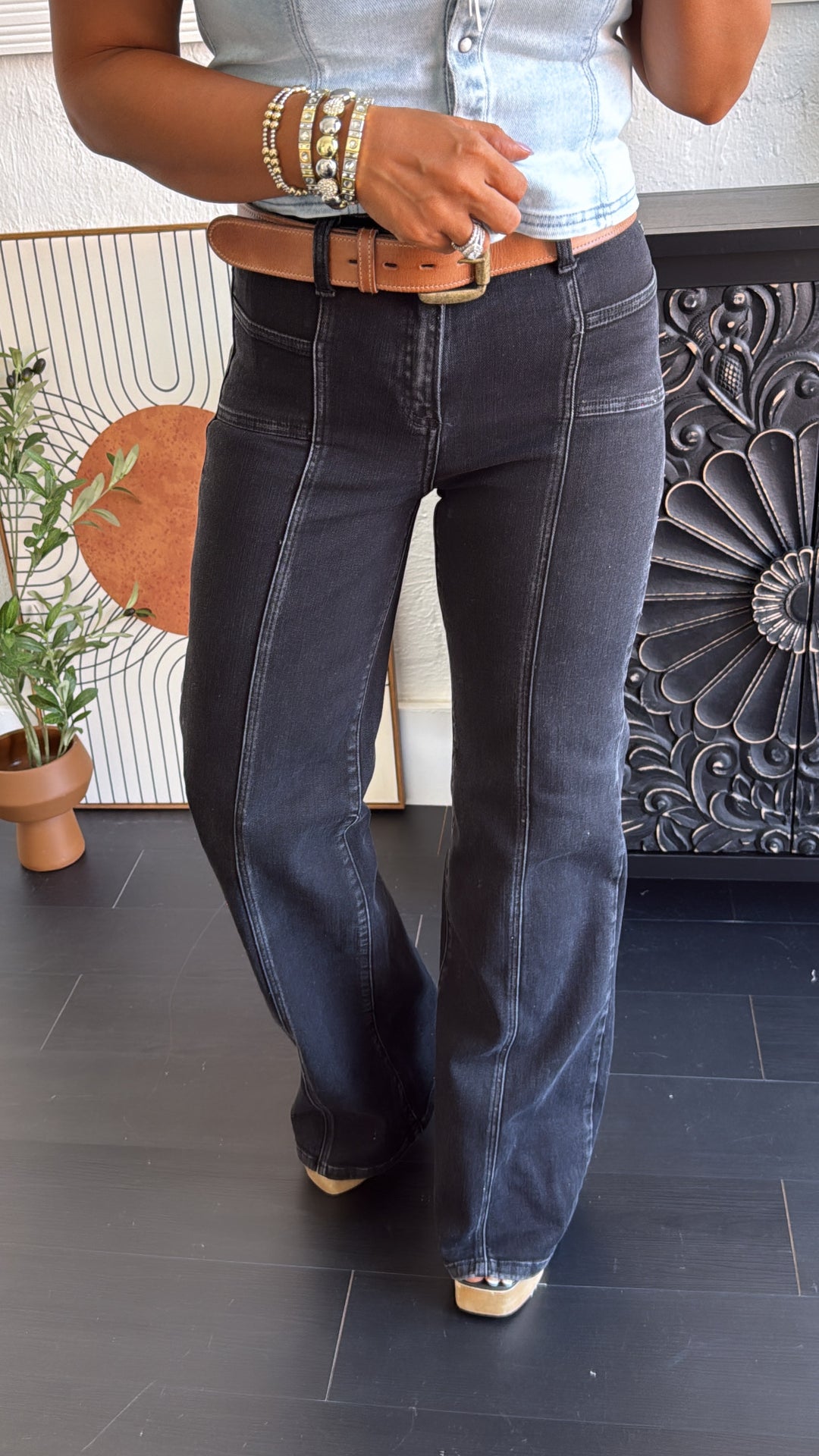Double Button High Rise Front Seam Detail Jeans, RISEN