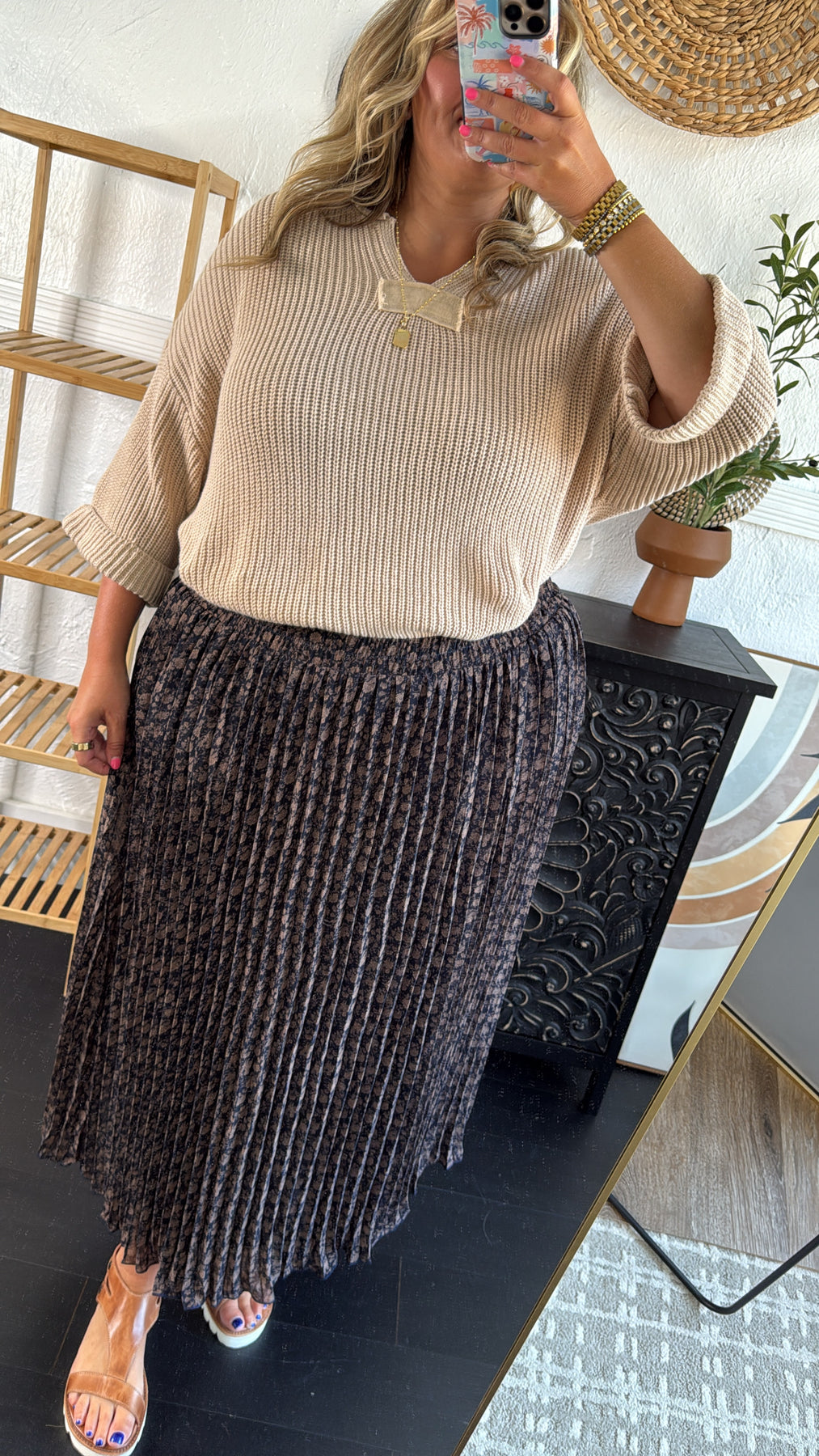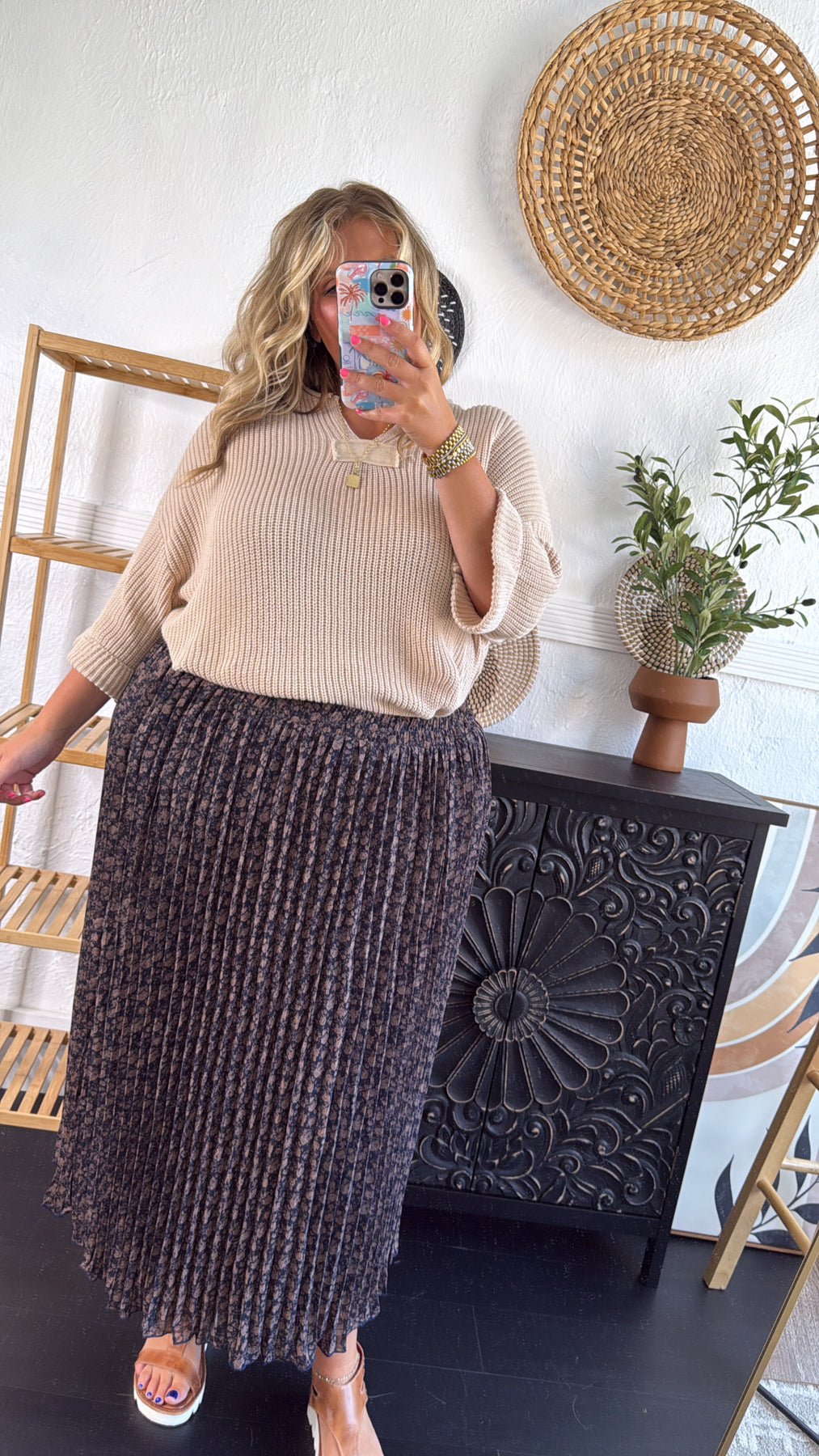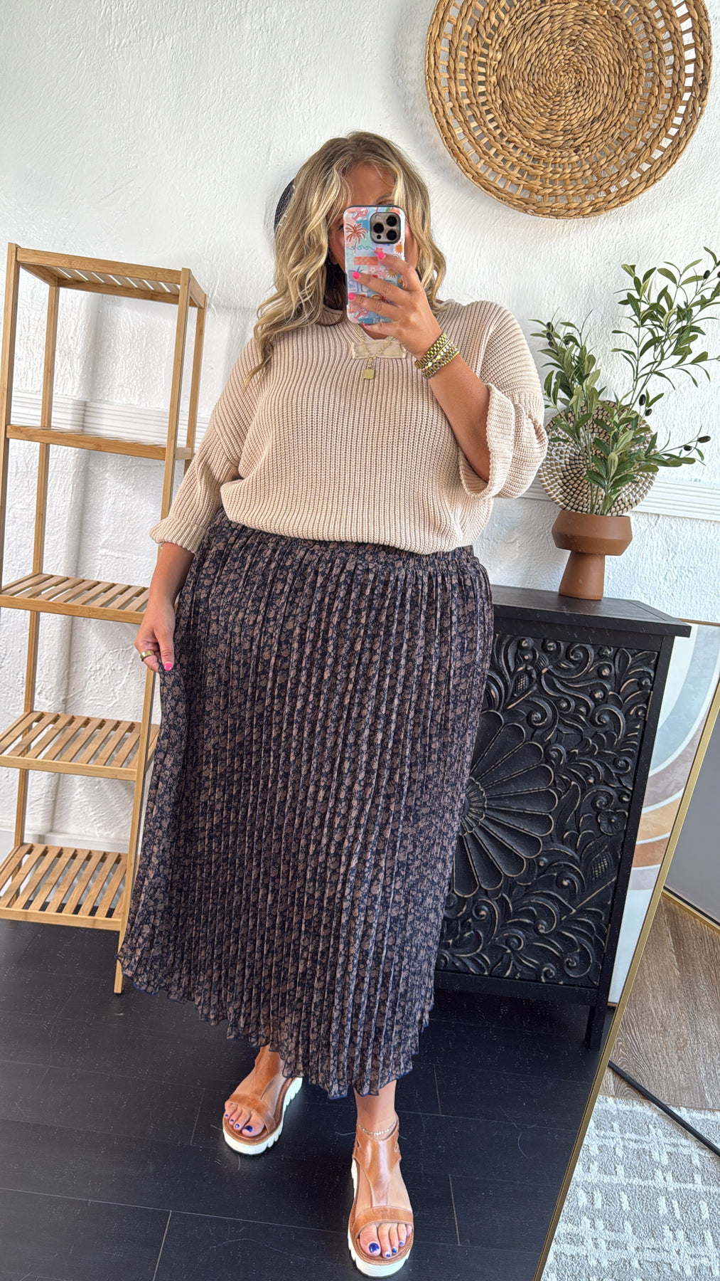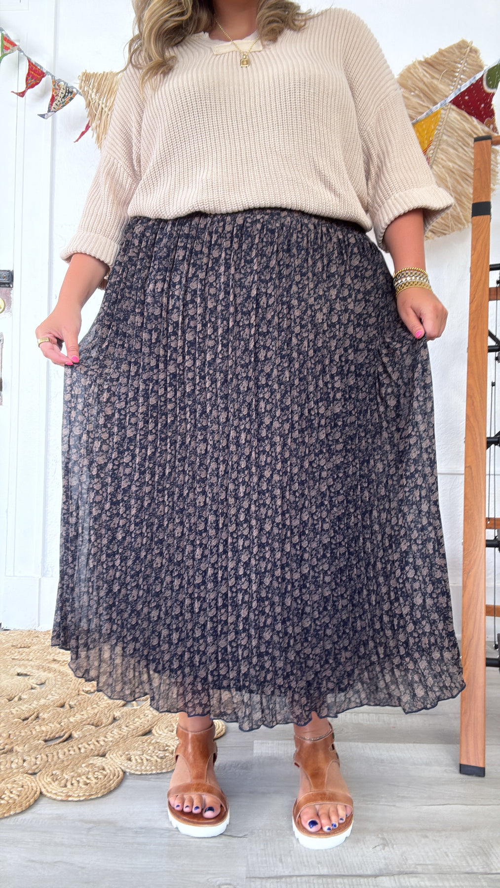 Elevate your outfit with our Garden Dream Floral Printed Pleated Midi Skirt! This midi features a gorgeous floral design and a stretchy/breathable fit. Effortlessly flowy and fabulous!