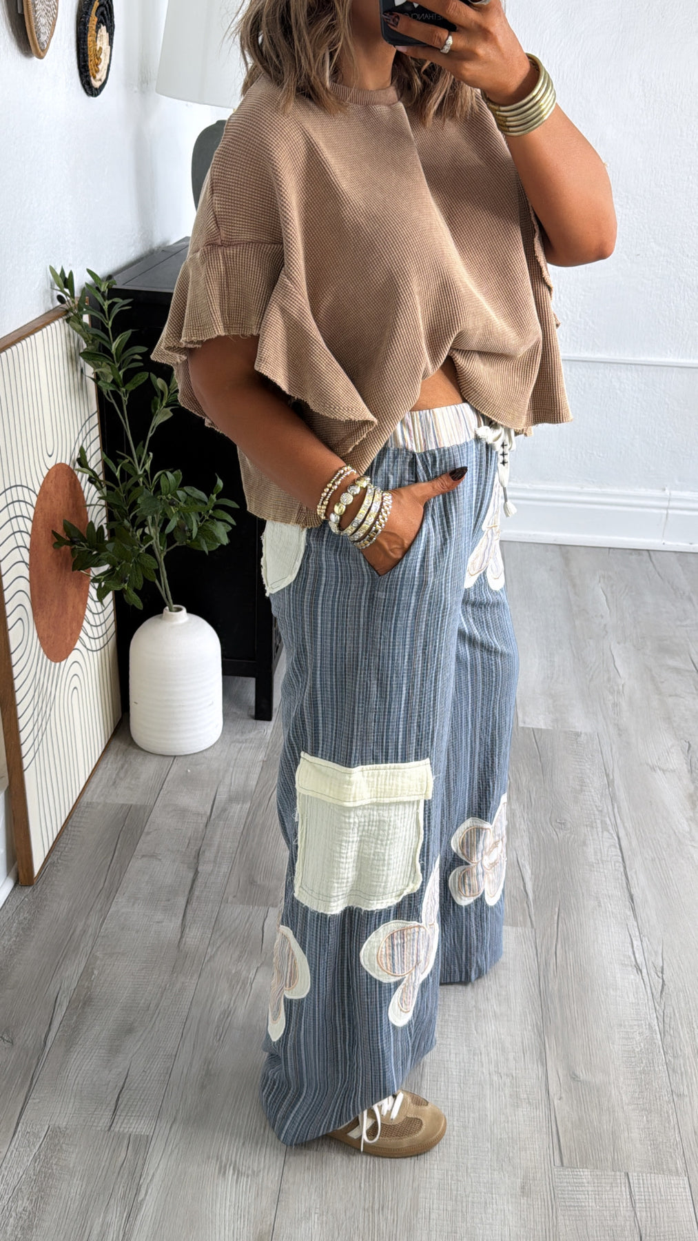 Say hello to your new statement pants. The Isla Floral Pant by POL combines laid-back comfort with standout style. Featuring a wide-leg silhouette and bold floral patch details, these flowy pants bring the perfect blend of boho vibes and elevated edge. They’re the effortlessly cool piece your closet’s been craving.