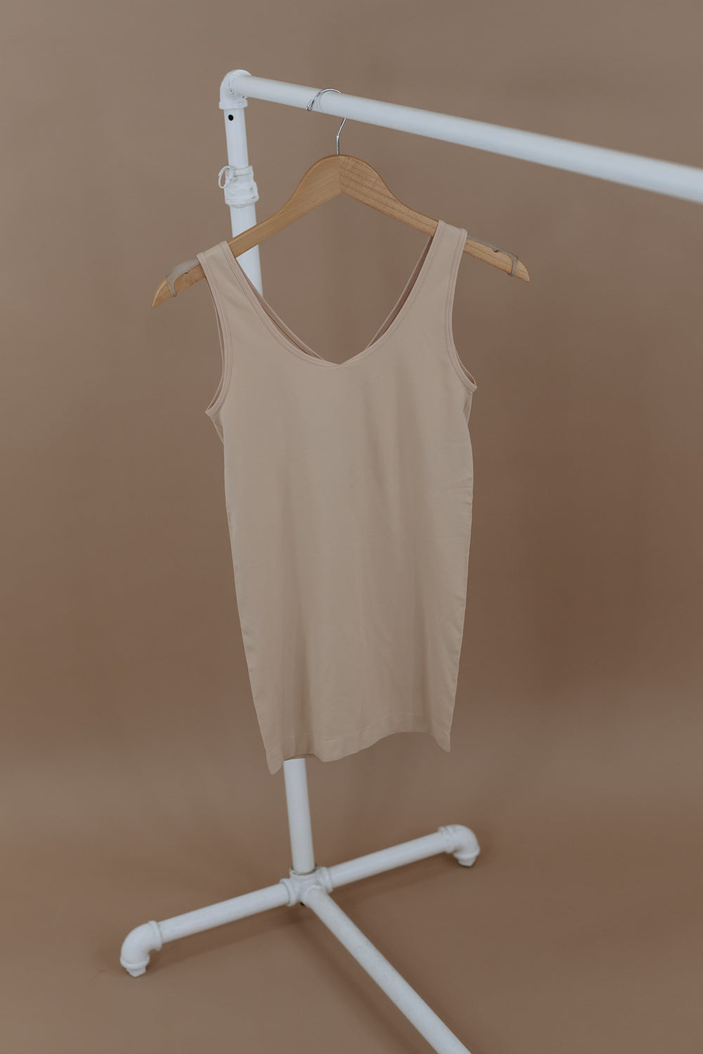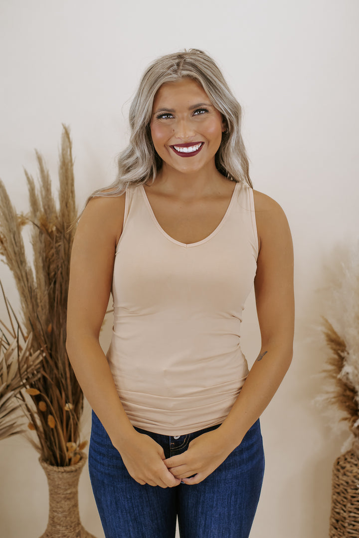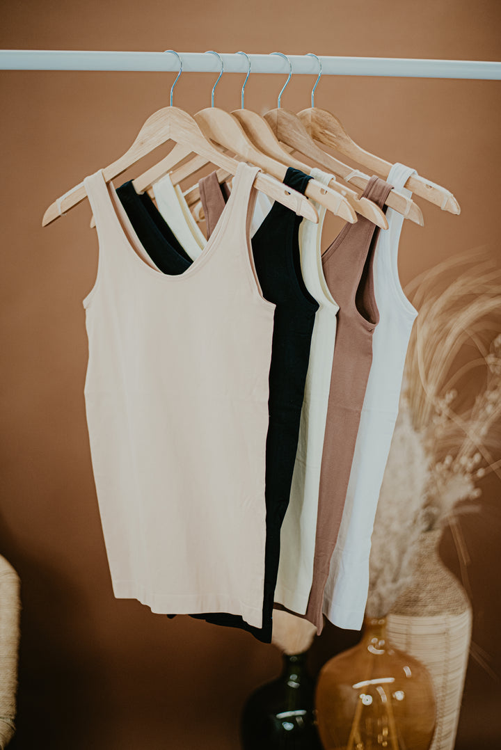 Basically, it's the best basic of ALL time! This ultimate layering piece has a v-neckline and fixed tank straps. The perfect tank to layer or wear by itself! Available in five colors. This tank will be one you continuously grab day after day.