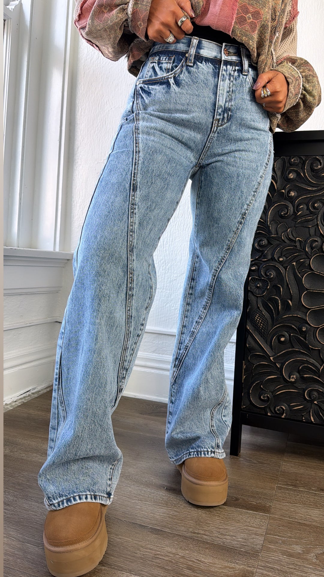 SAIGE: Studio Ready Barrel Jeans, Medium Light