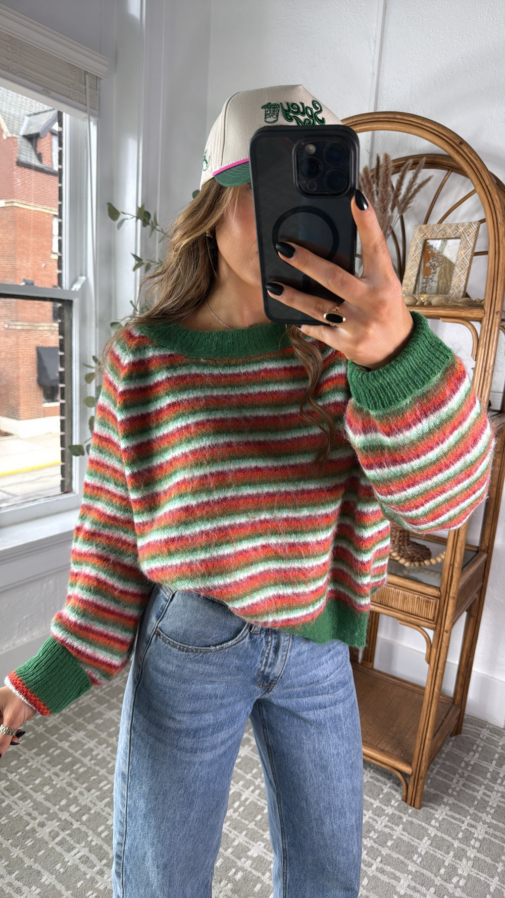 DOORBUSTER: Acid Washed Ribbed Cropped Pullover, Brown
