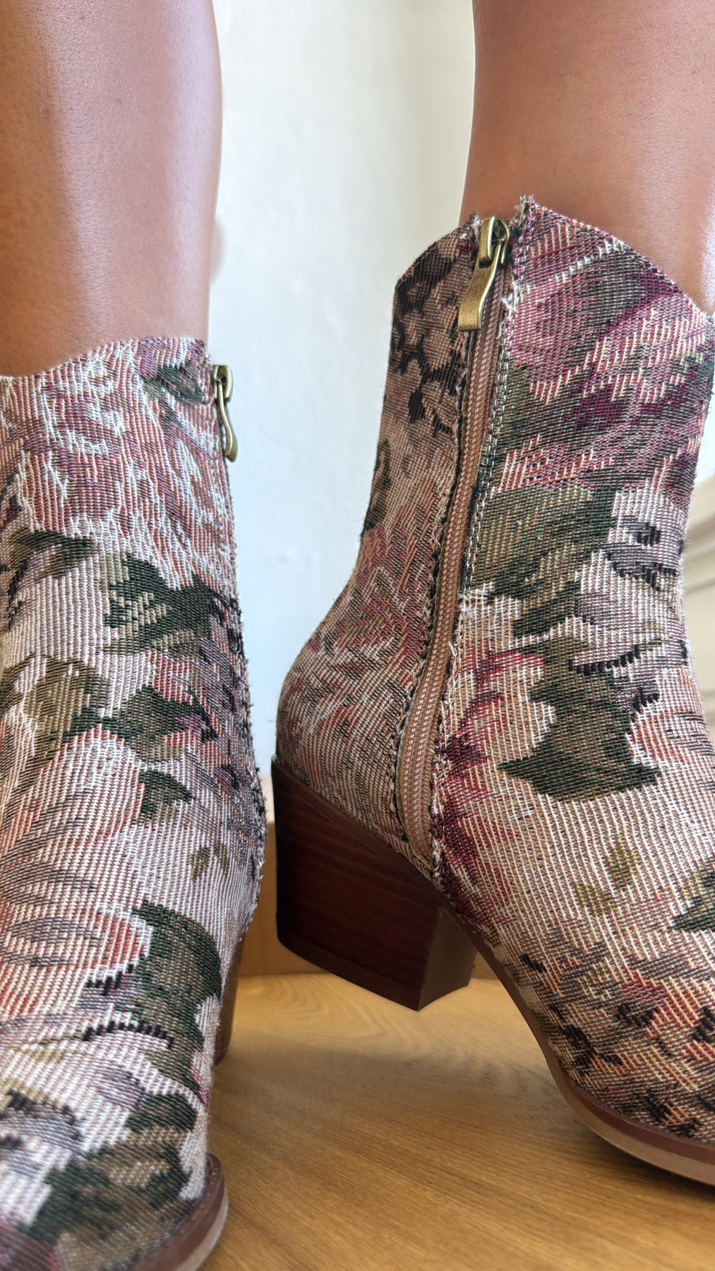 Make a gorgeous statement in our Dawes Tapestry Boot. These chic tapestry boots are the perfect addition to your shoe collection! They elevate even the most simplistic of outfits.