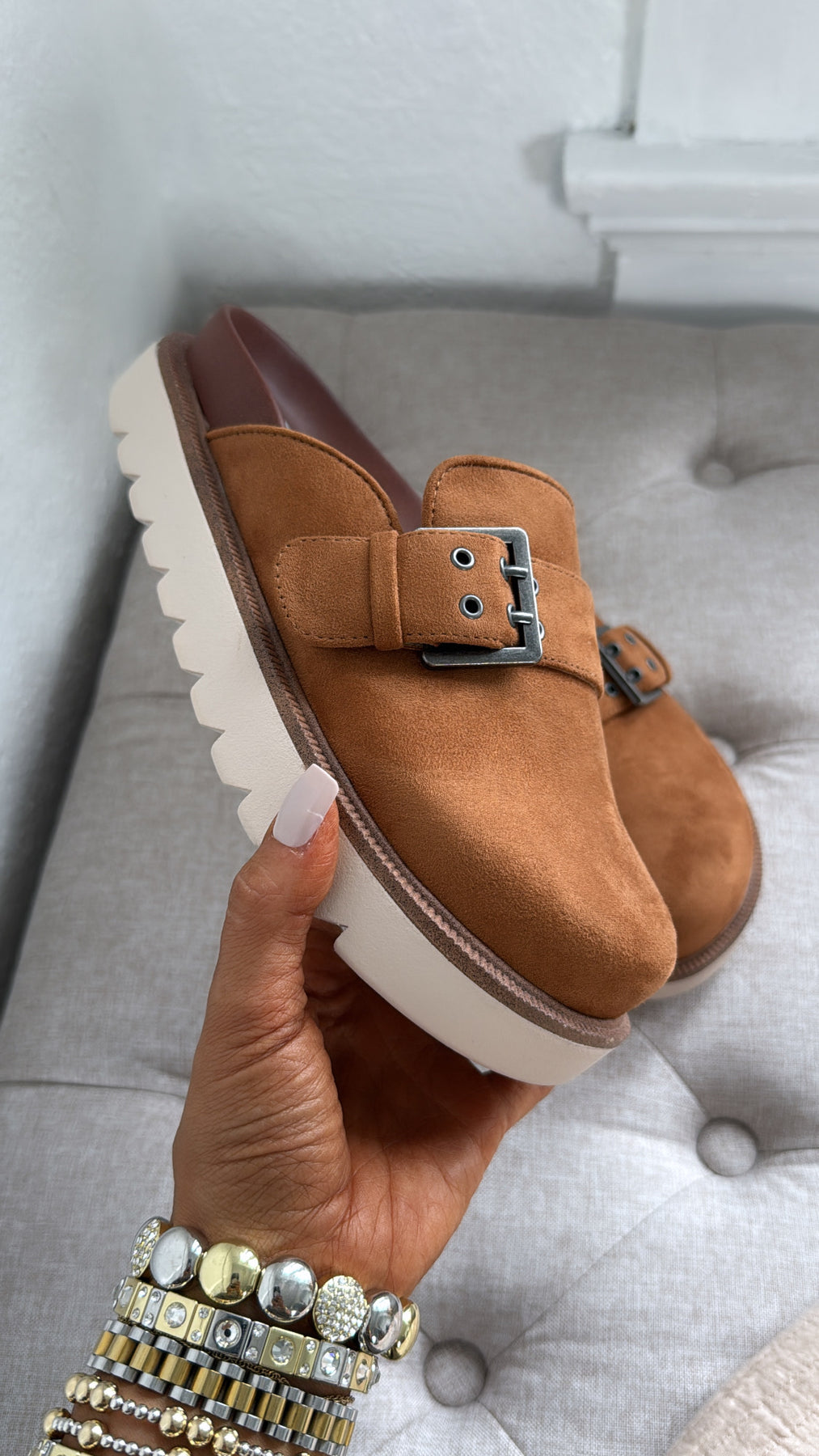 The Mirewood Clogs Clogs in Camel by Mia feature a chic matte finish and an easy-to-wear slip-on design perfect for everyday ease. Their cushioned footbed and slightly elevated sole offer both comfort and subtle lift for all-day wear. The camel shade makes them a versatile addition to casual or transitional-season outfits.