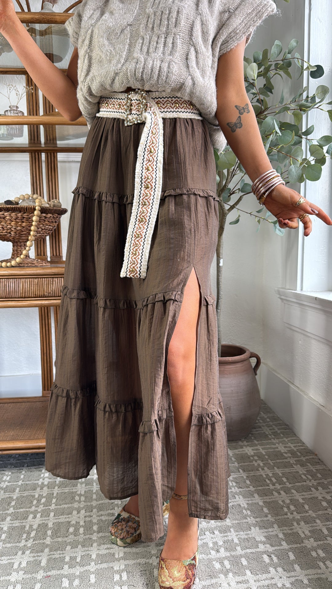 All Mine Mix Print Chiffon Ruffle Maxi Skirt