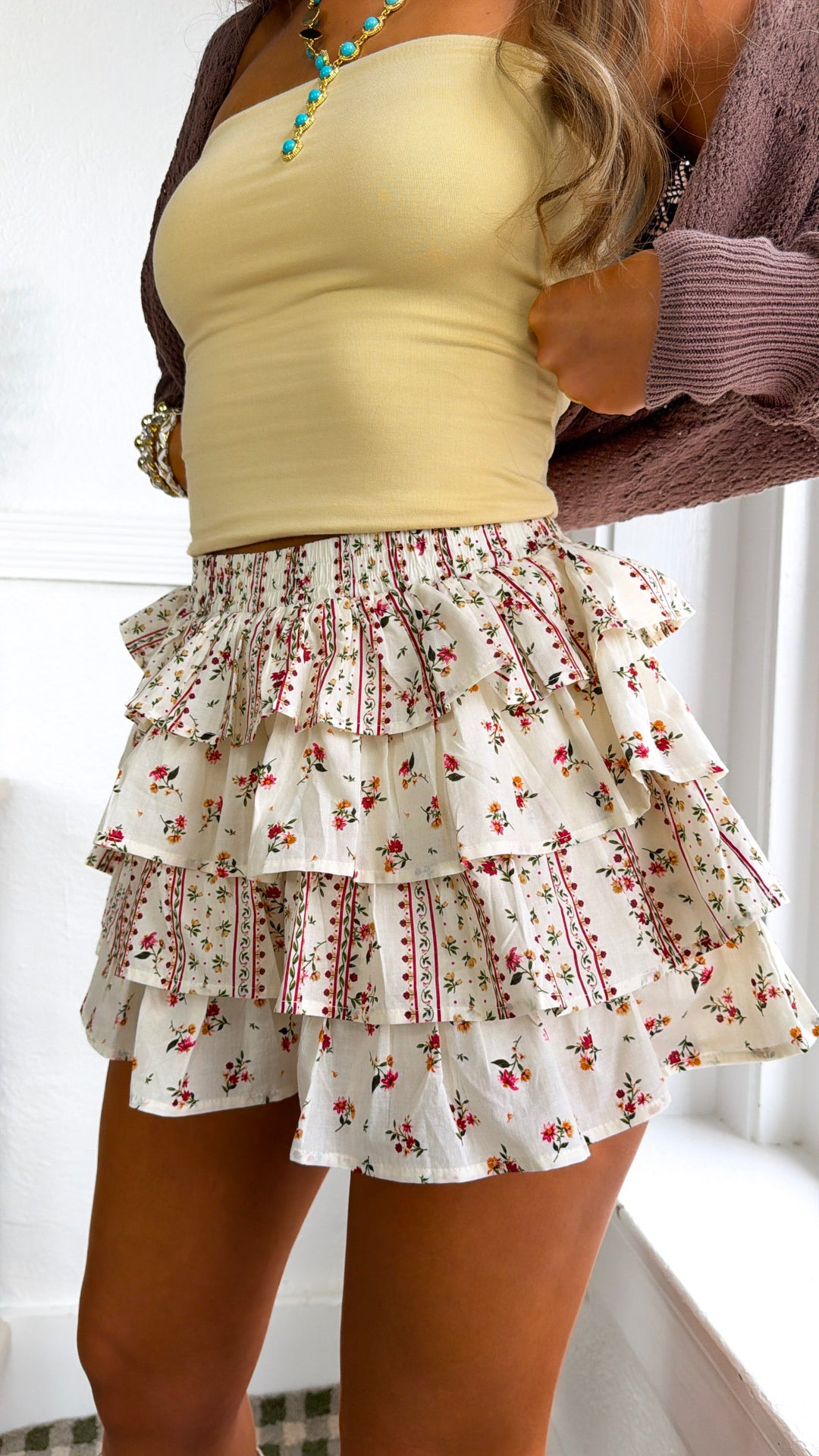 Falling For Floral Tiered Midi Skirt