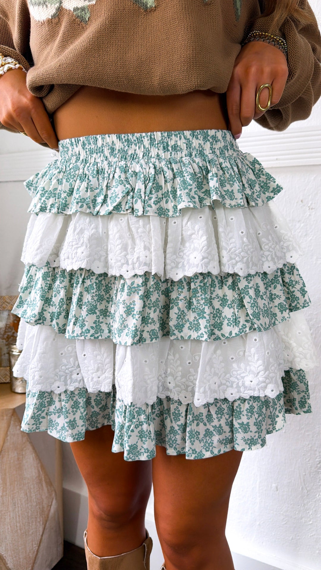 Picture Perfect Floral Tiered Midi Skirt, Brown
