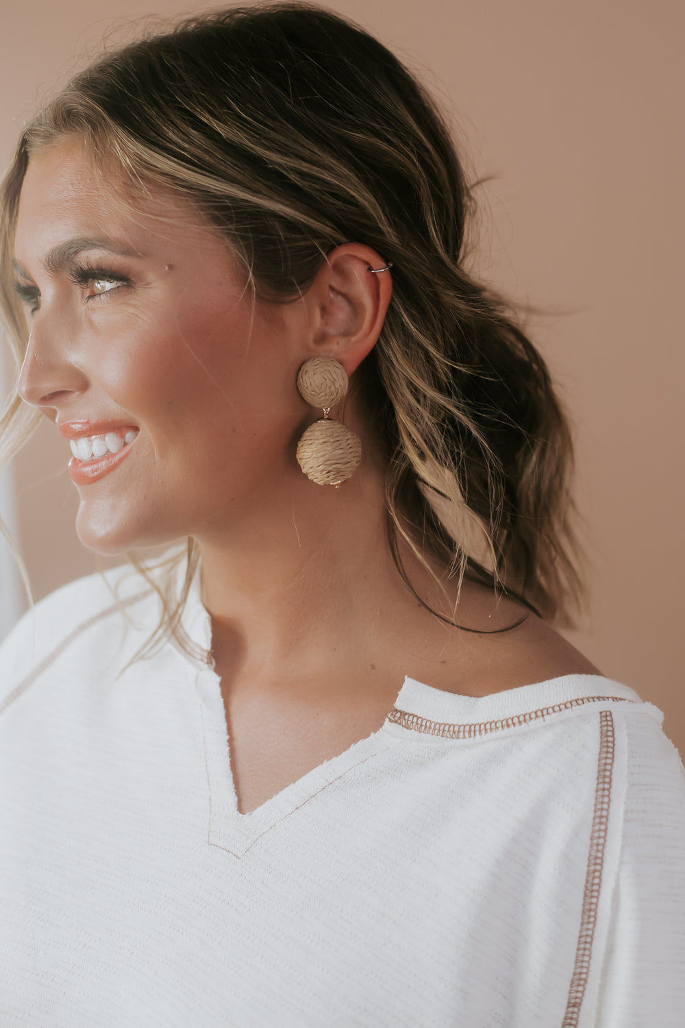 Raffia Wrapped Ball Post Drop Earrings