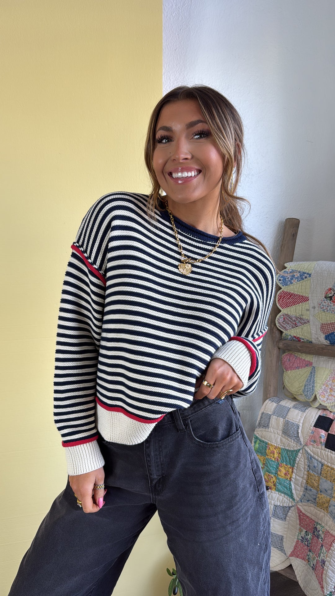 Summer Striped Sweater, Cream/Navy