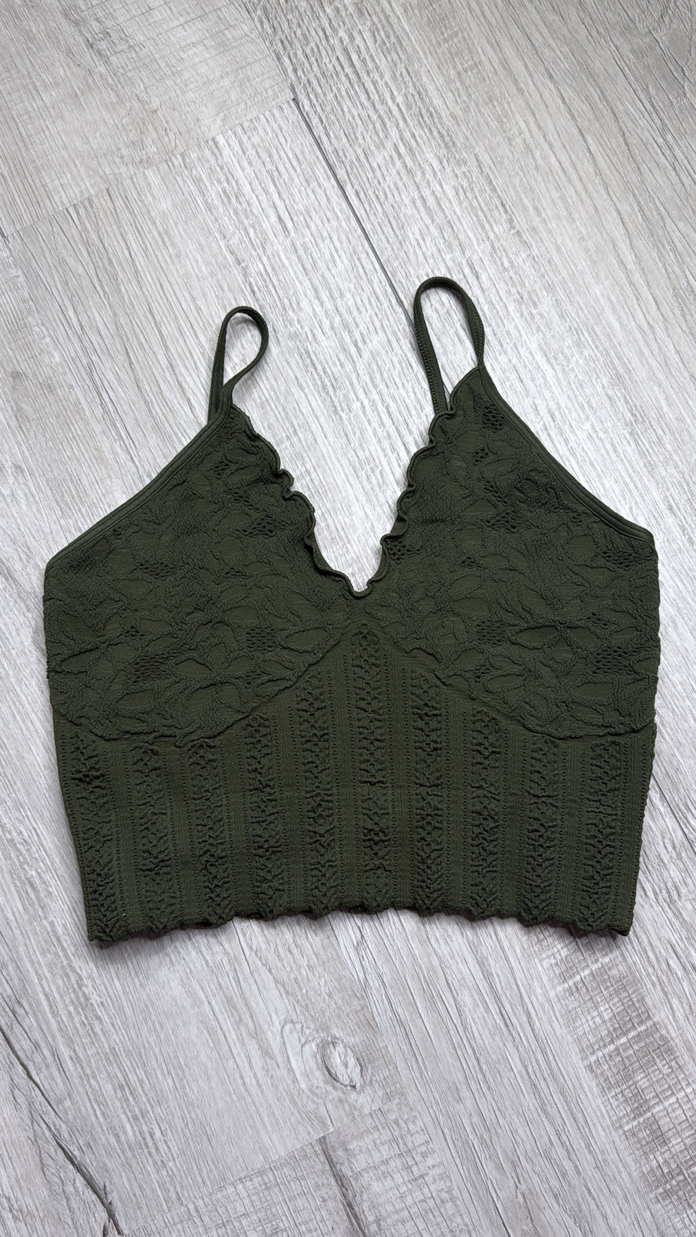 This is a staple for every closet - I promise you won't be disappointed! The Lace Textured Bralette is ultra feminine and gorgeous. Featuring dainty straps, ultra stretchy & comfortable fit, slightly scalloped lining, & a lace textured design. Pairs flawlessly with endless outfits.