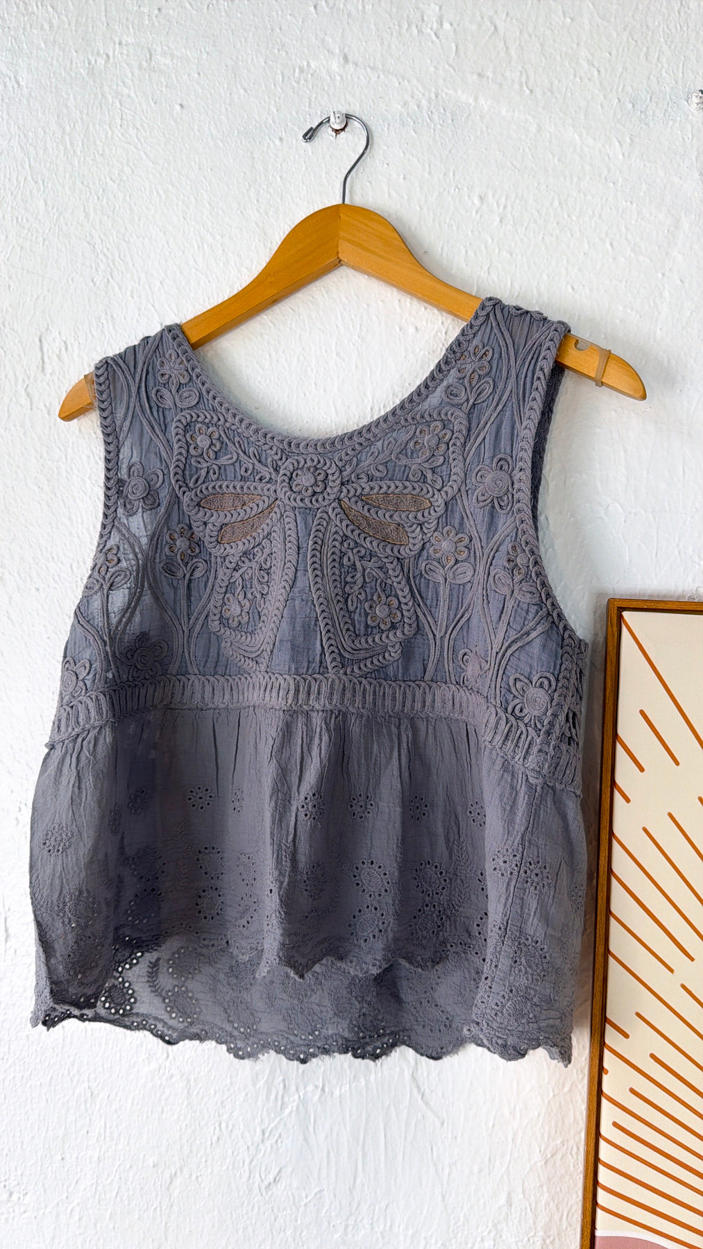 Soft, feminine, and effortlessly pretty. The Honey Petal Tank is a beautiful blend of delicate detail and everyday comfort. Designed in a soft heather grey, this tank features intricate embroidered floral lace across the bodice and a breezy peplum-style silhouette that creates a flattering, flowy fit.