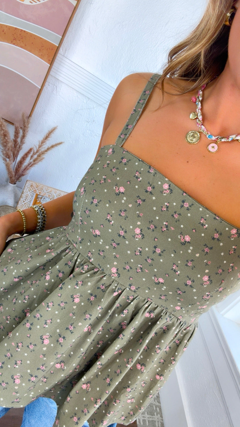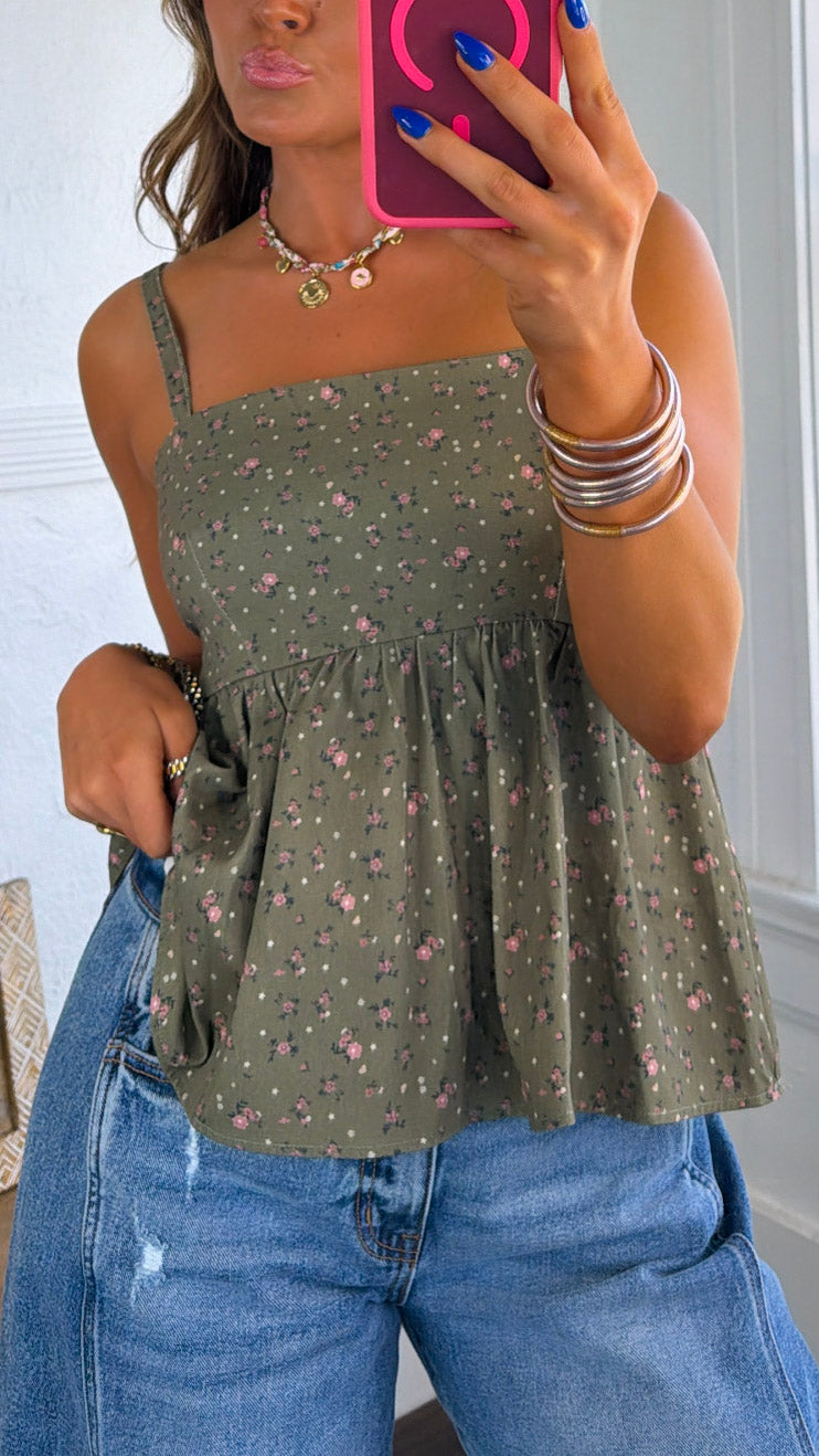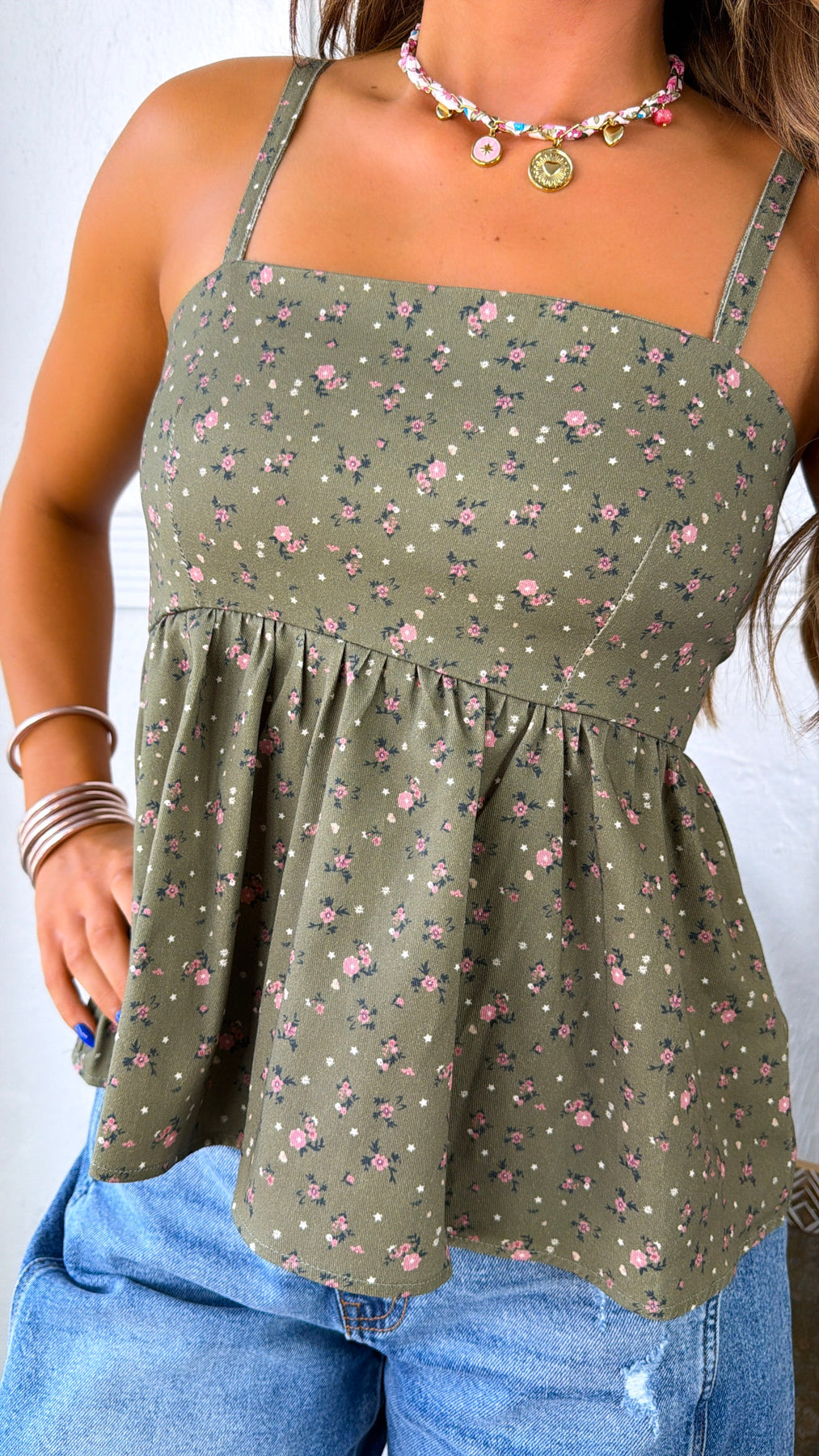 Sweet, feminine, and effortlessly flattering. The Whispering Rose Tank is a perfect everyday piece with a soft romantic feel. Featuring a delicate floral print on a beautiful light olive backdrop, this tank is designed with a structured bodice and flowy peplum silhouette that creates a flattering, easy-to-wear fit.