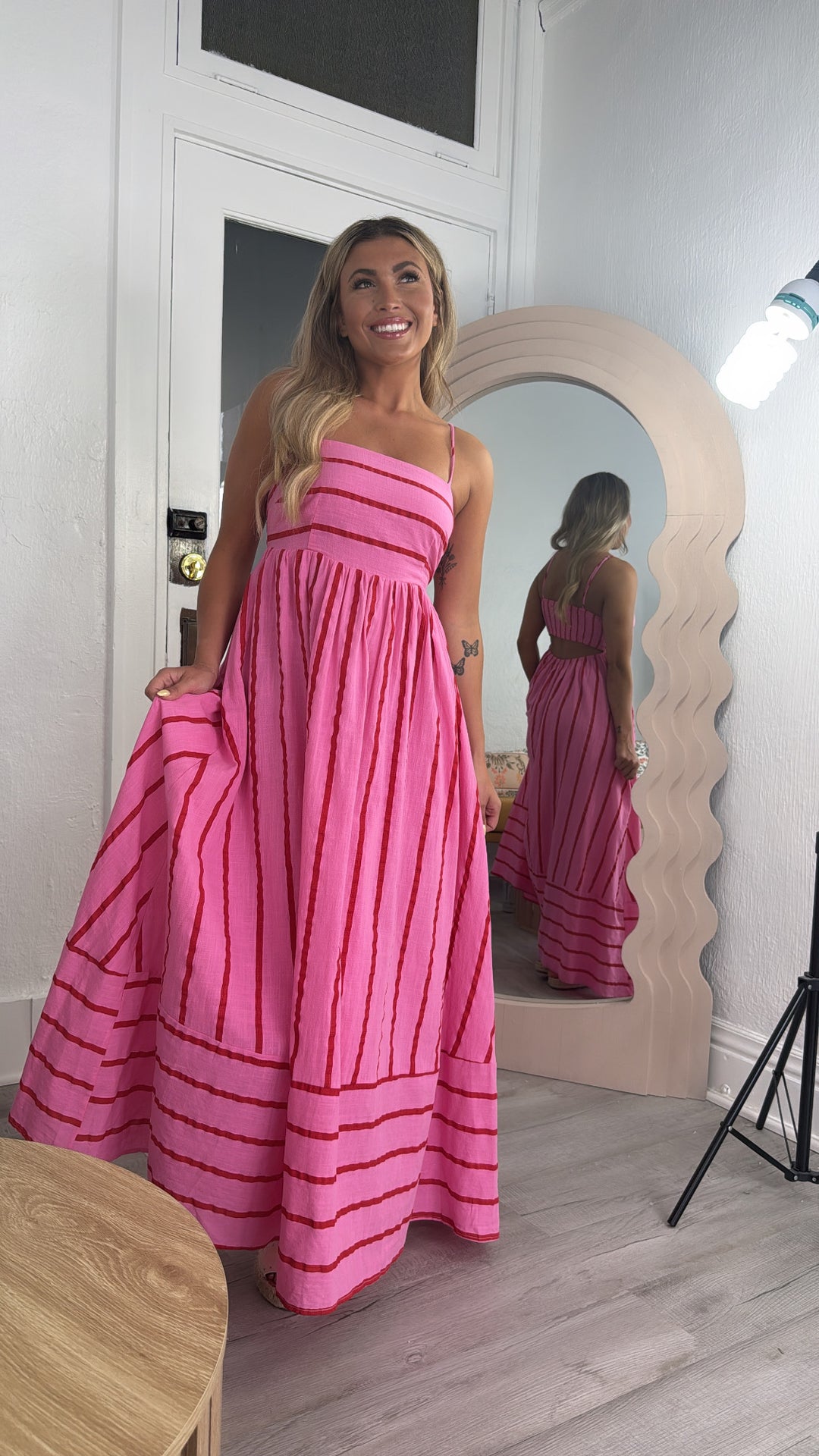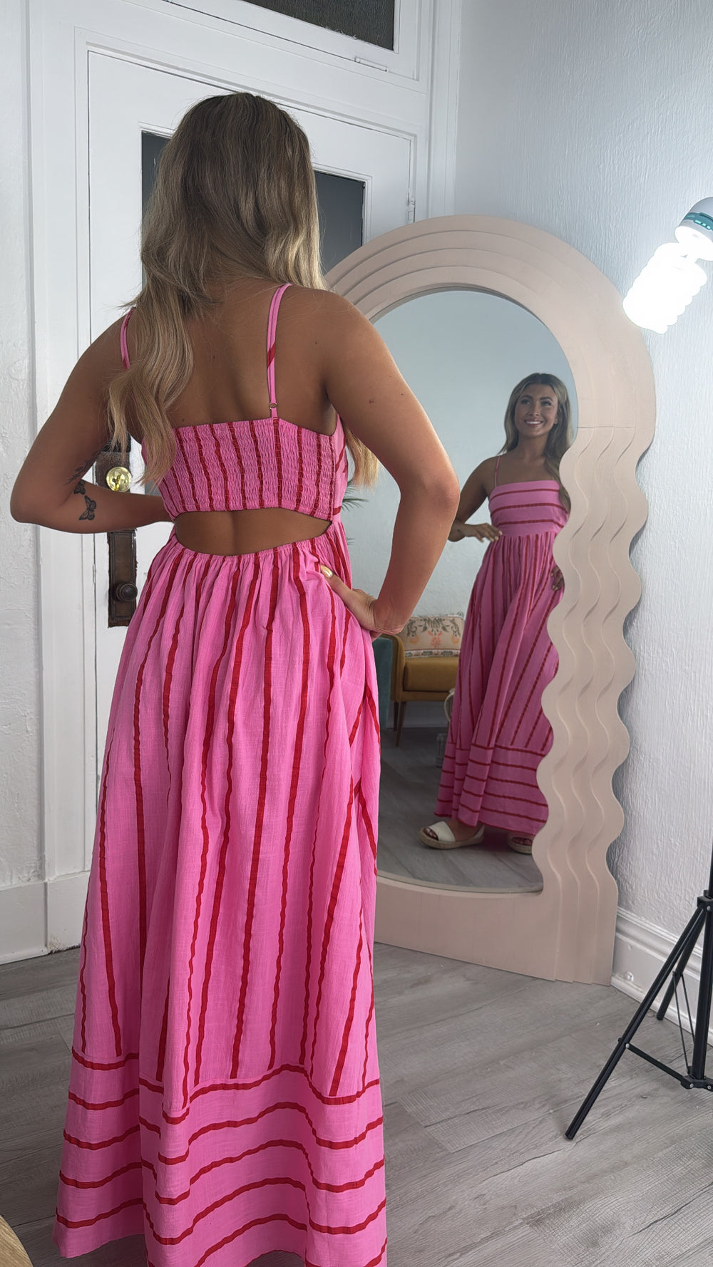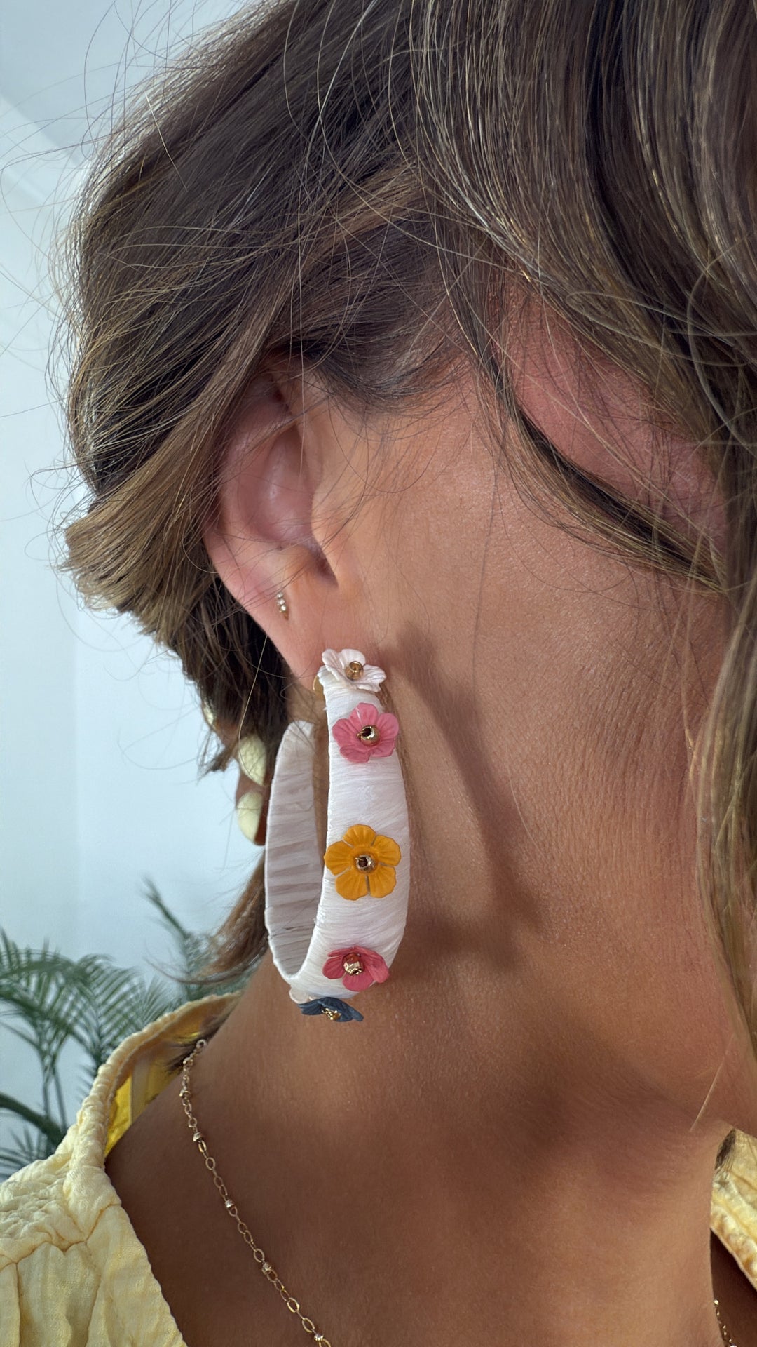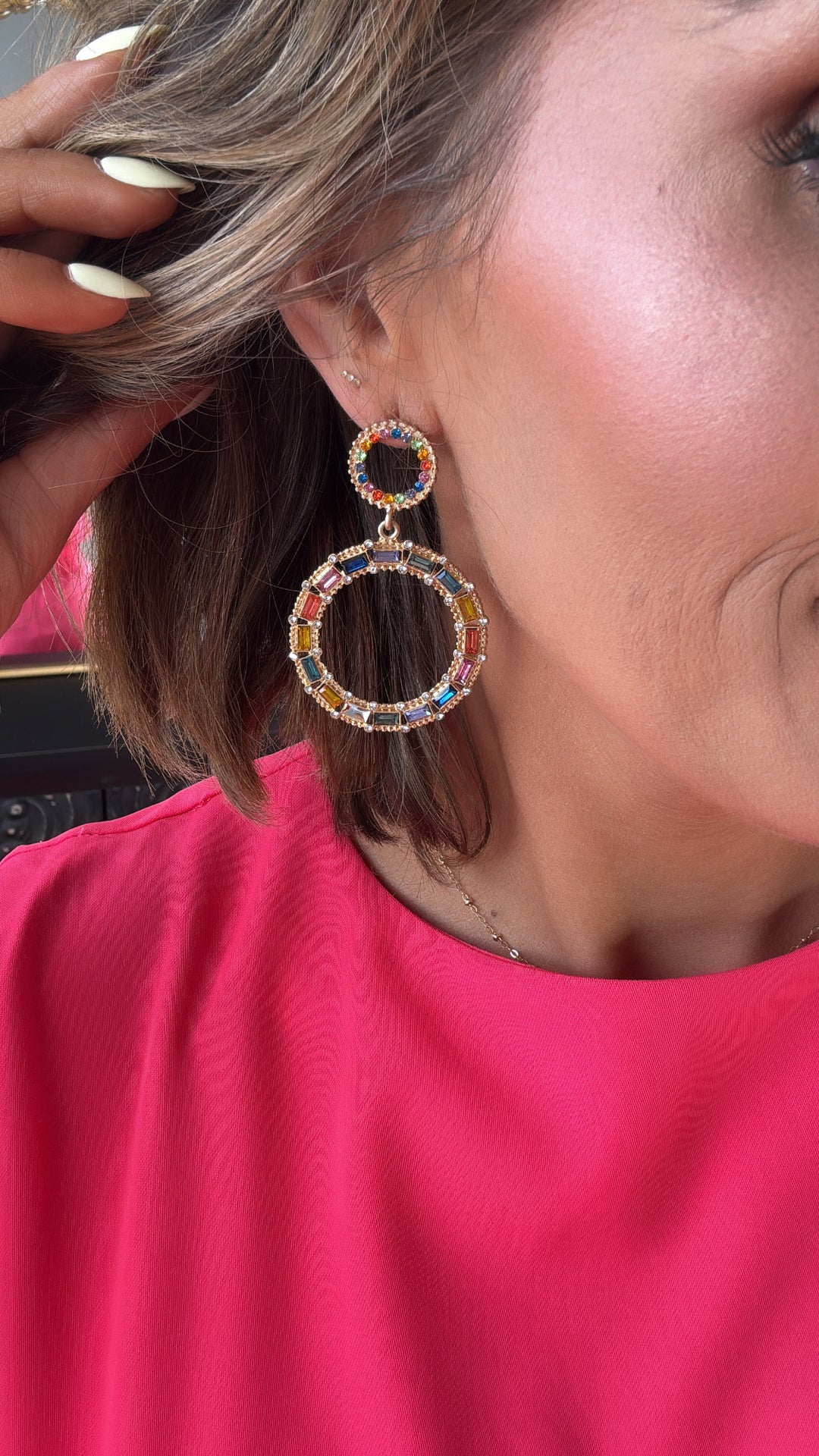 Checkered Seedbead Rectangle Earring, Fuchsia/Gold