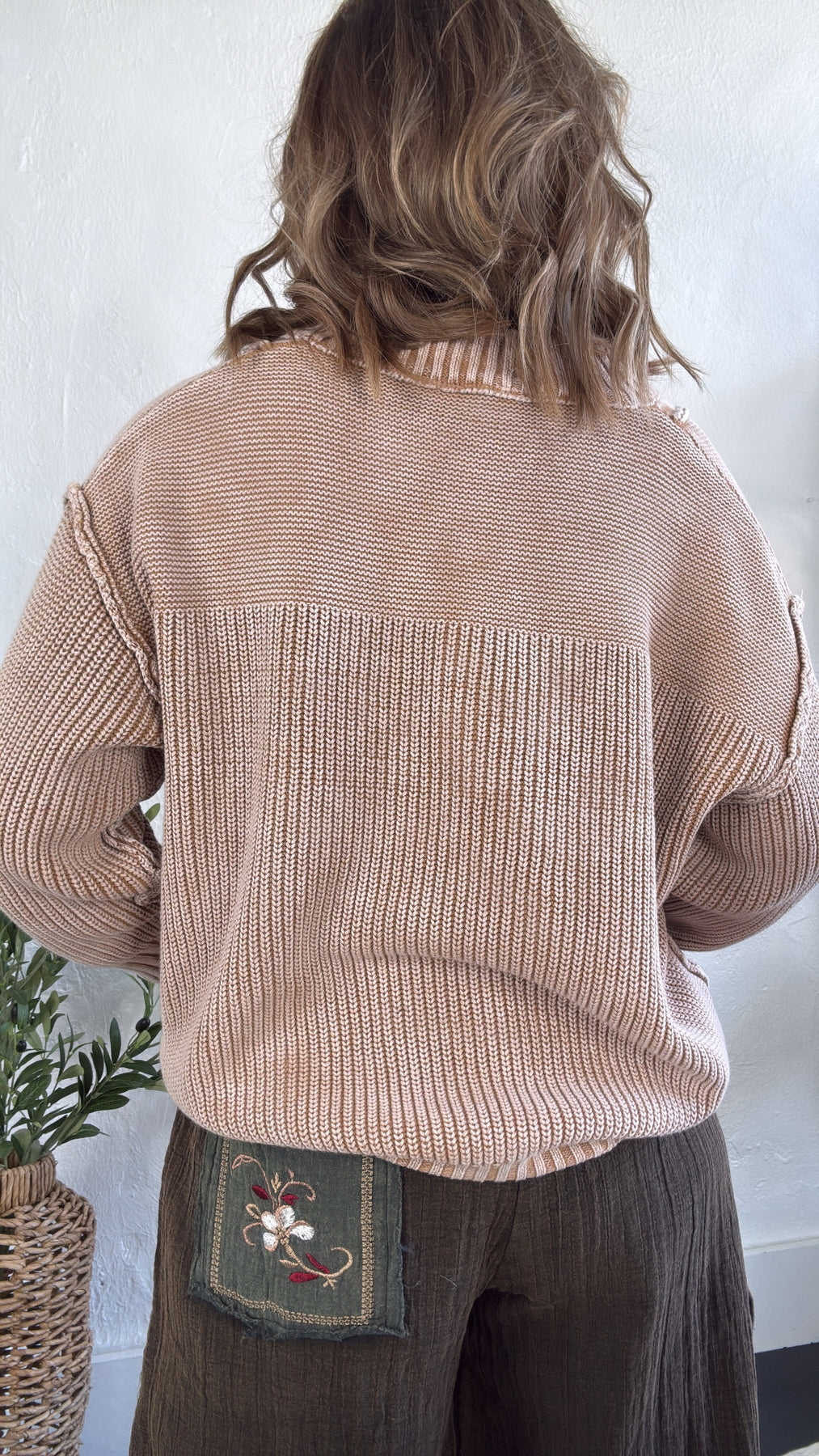 Receive endless compliments in our Chill Vibes Pullover Sweater in the mineral wash walnut color! This button up neckline sweater features a ribbed neckline, exposed seam detail, button up neckline, and oversized fit.