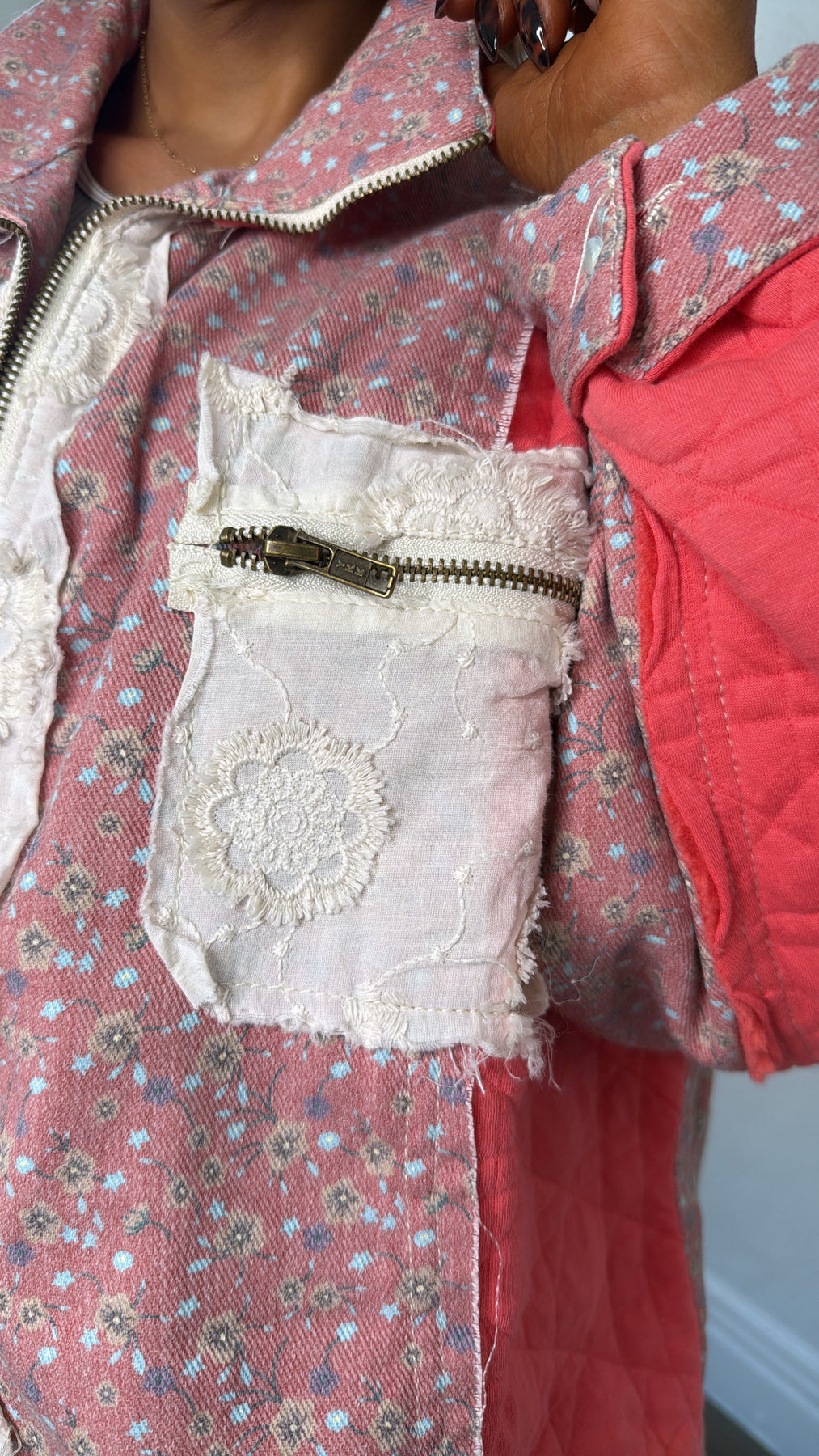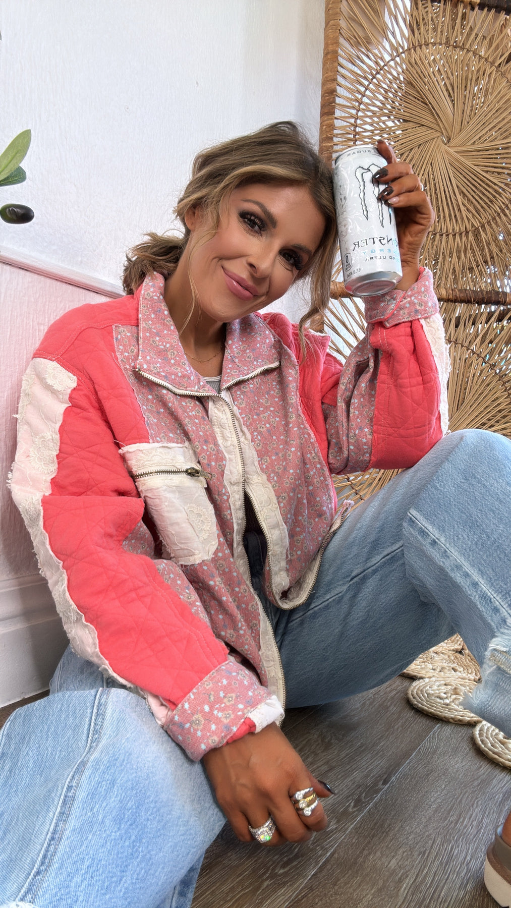 Trendy and stylish is the Wildflower Weight Jacket in Coral. Stay warm and on trend all season long in this gorgeous zip-up jacket.