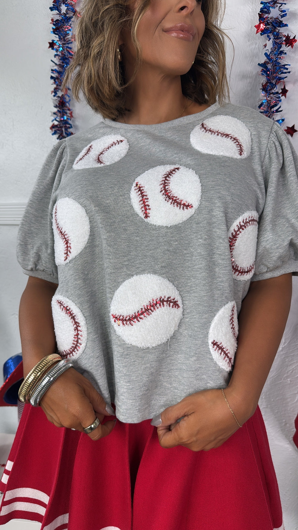 Baseball Mom Oversized Rhinestone Tee, Blue