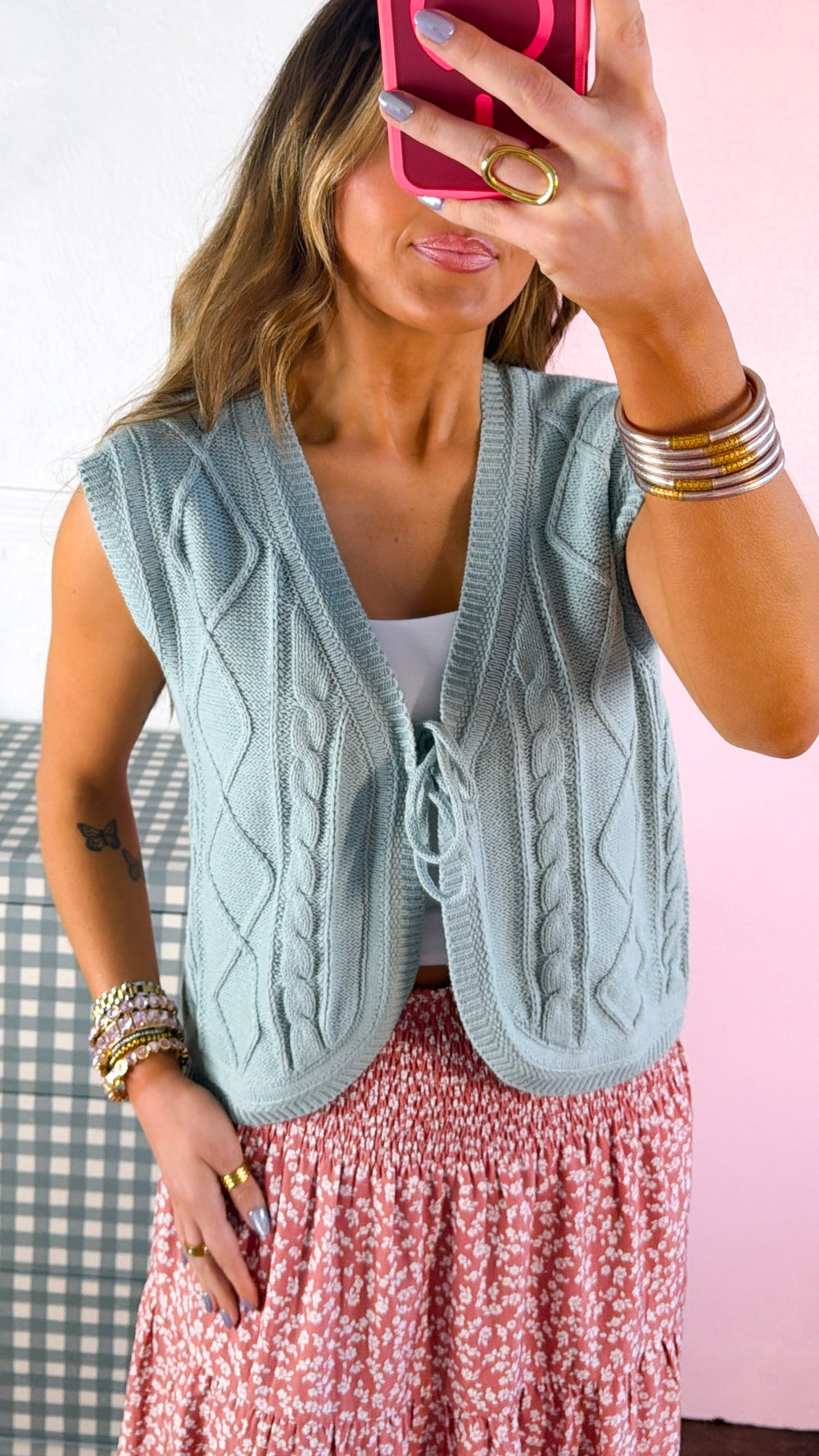 Lillian Cable Knit Sweater Vest, Dk.Sage
