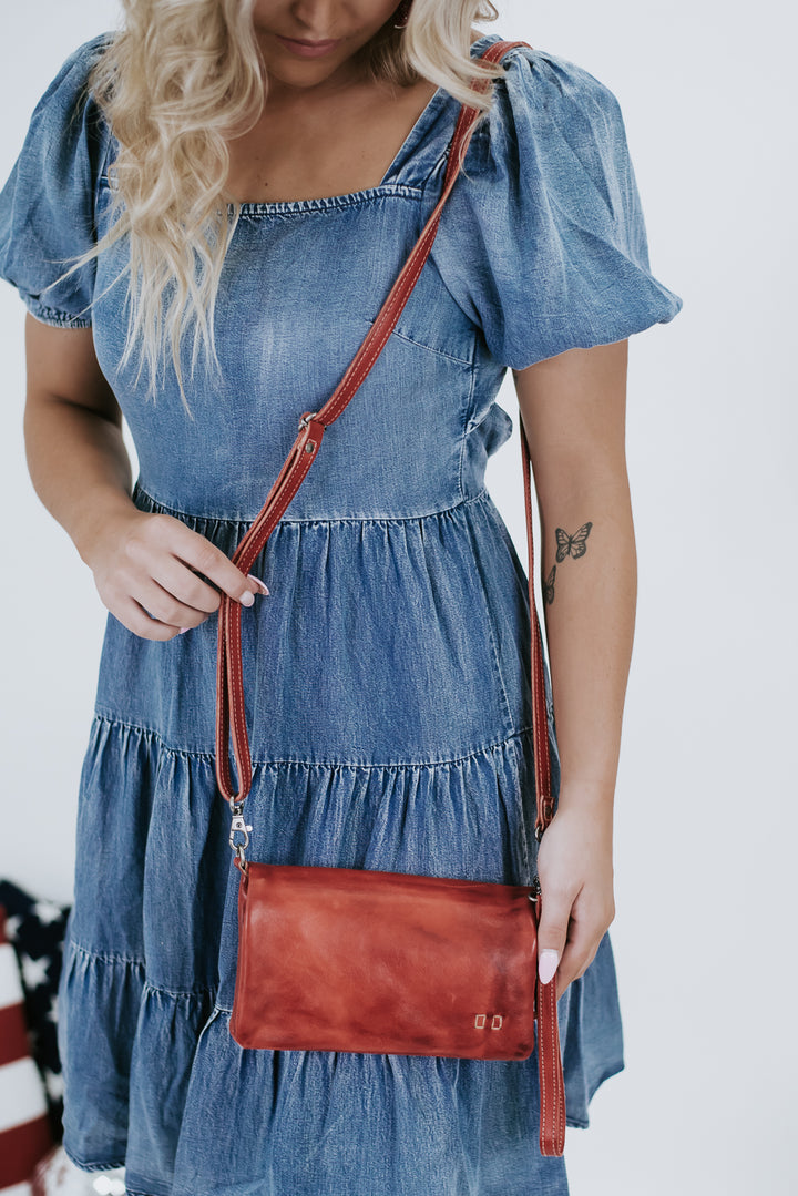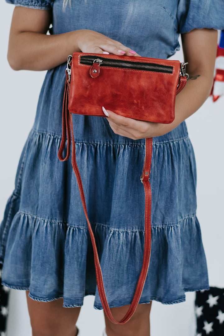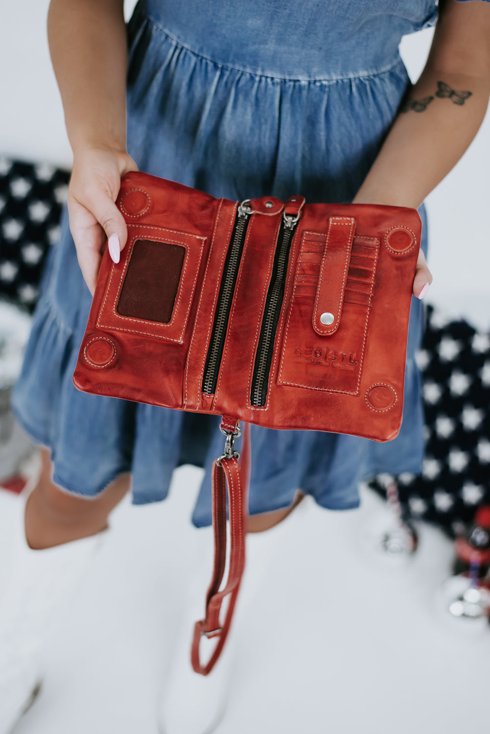 Fun meets function with CADENCE. A redleather wallet, crossbody or clutch, this little doll leaves you hands free for spontaneity. This modern essential has 2 inner zipper pockets, place for ID & credit cards, with a metal magnet closure. Compact & perfect for girl's night out.