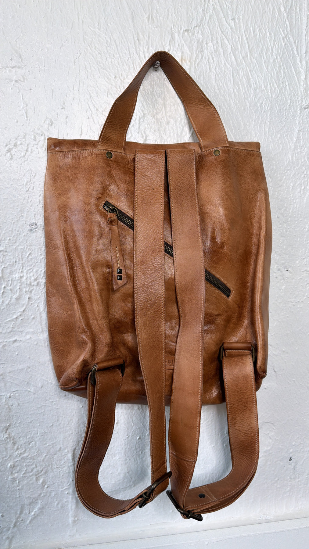Handsome backpack for a man or woman, HOWIE is made with beautiful hand finished leather and details that keep your items secure. Featuring a large slip pocket on the face of the bag gives you the option to carry a laptop inside, and the tablet outside for quick access. Adjustable leather straps make this bag a perfect addition to anyone's wardrobe.
