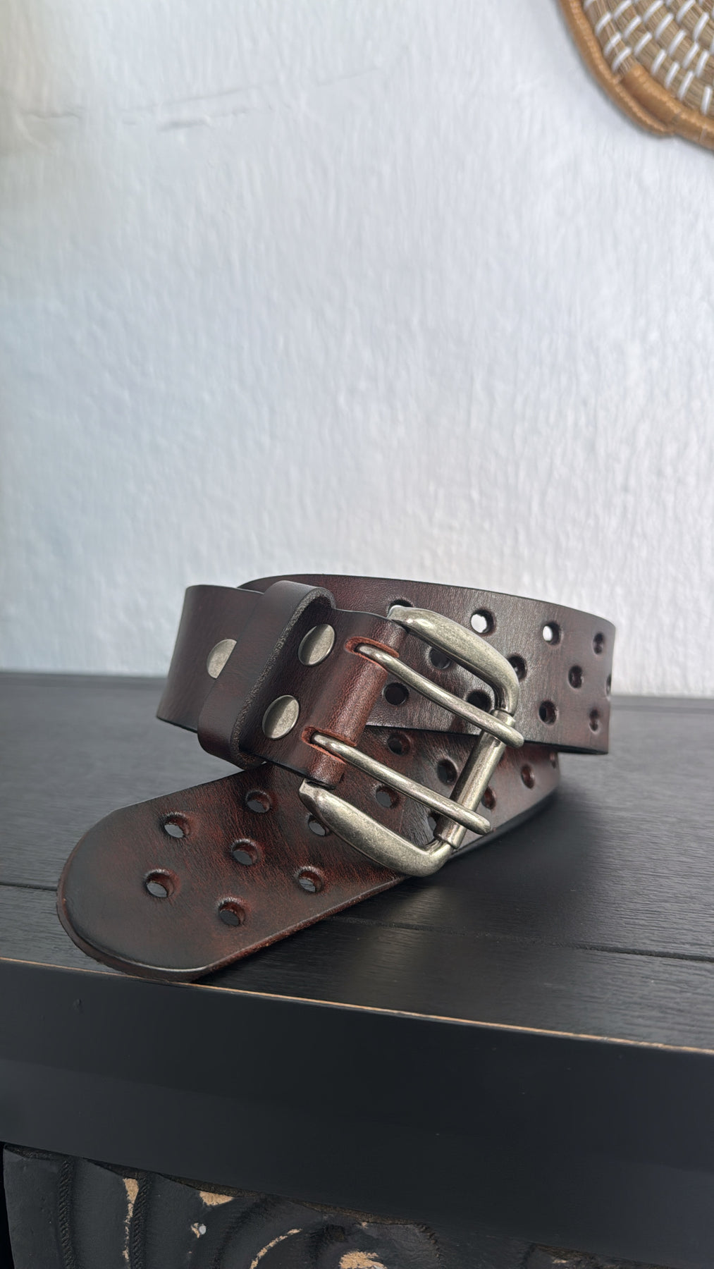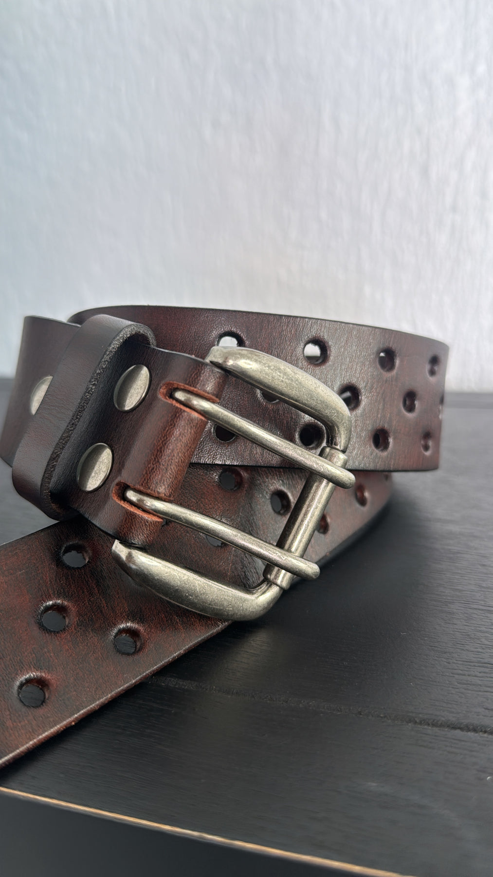 - Interchangeable double prong antique silver buckle