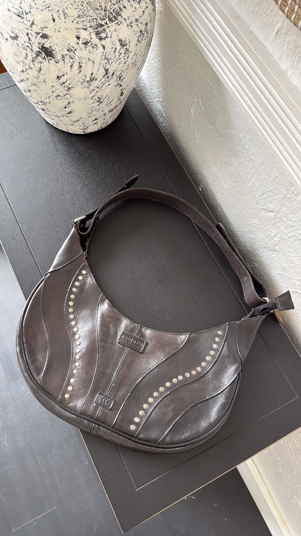 Megara is a stylish saddle bag that combines playful leather details with bold metal studs for a standout look. Designed as a roomy shoulder bag, it offers plenty of space for your essentials while adding a touch of flair to your outfit. Whether you're headed to work or out on the town, Megara's mix of fun details and practical design makes it the perfect everyday companion.