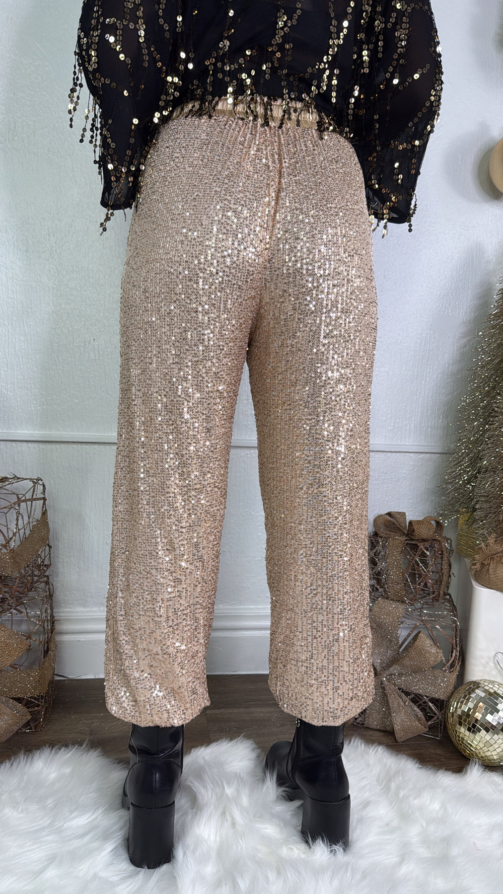 Make an entrance in this sleek yet chic sequin jogger. This captivating sequin jogger features a relaxed, true-to-size fit, met with full sequin detailing throughout and functional side pockets.