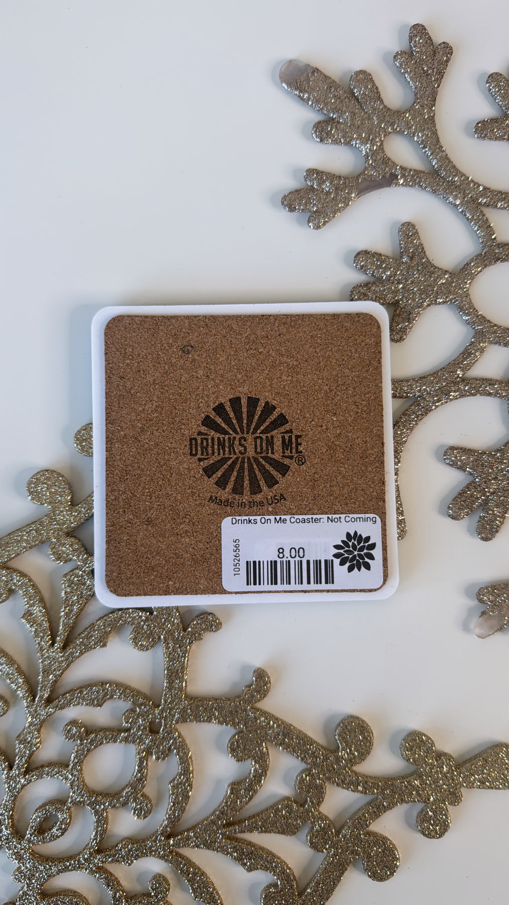 - Coasters are 4”x 4” resin with cork backing and round corners