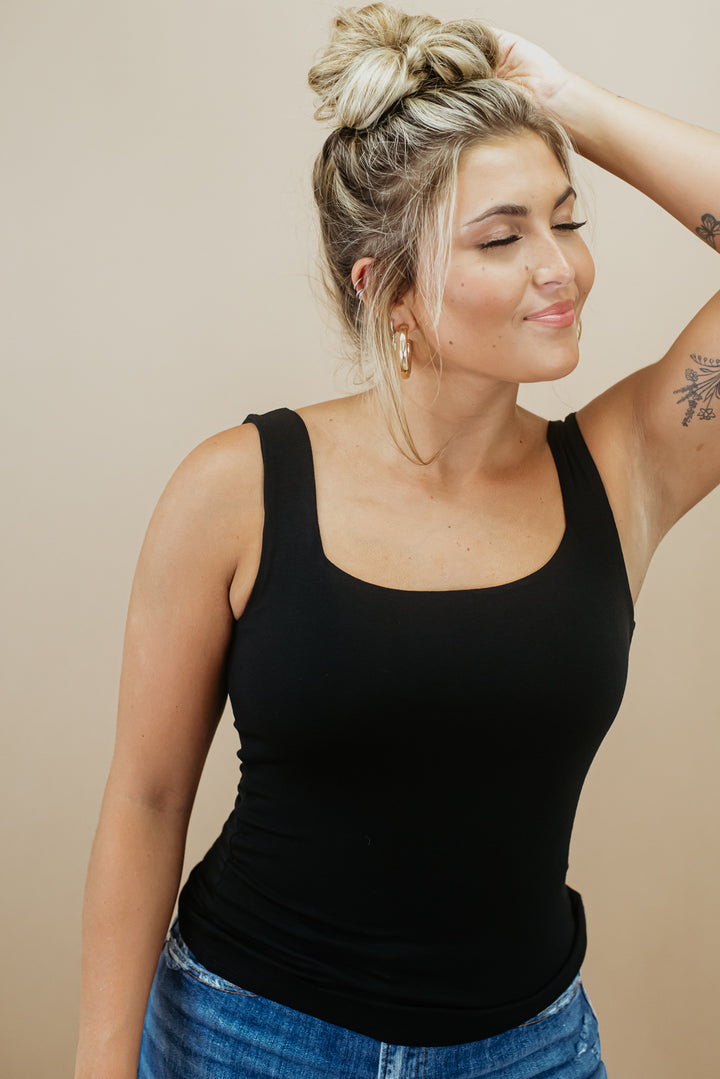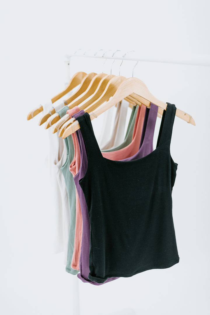 The Double Layered Reg Length Tank is a must-have for a casual summer wardrobe, offering the best basics with its double-layered design that adds a touch of uniqueness to a cute and solid shirt. This stylish and lightweight tank effortlessly embodies a summer aesthetic.