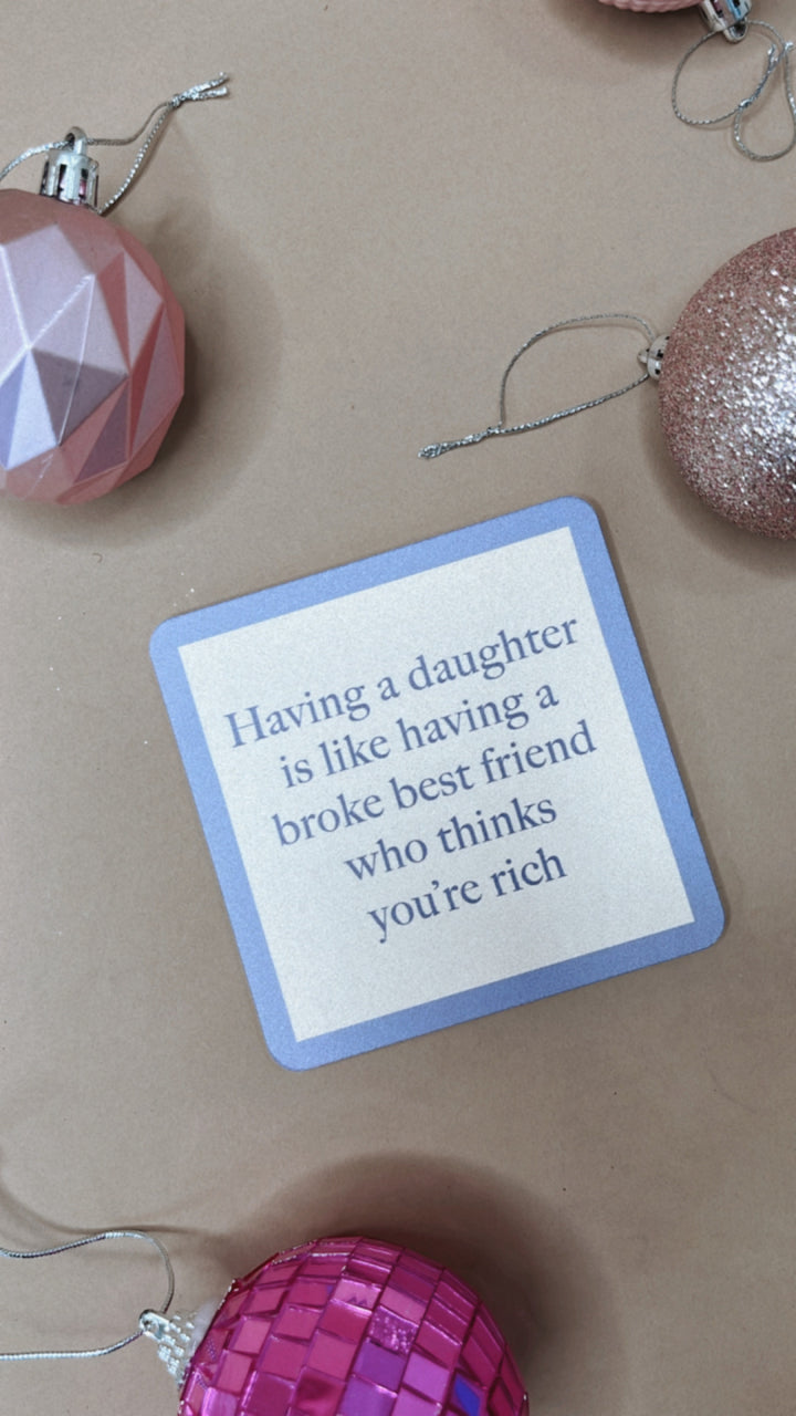 "Having a daughter is like having a broke best friend who thinks you're rich."