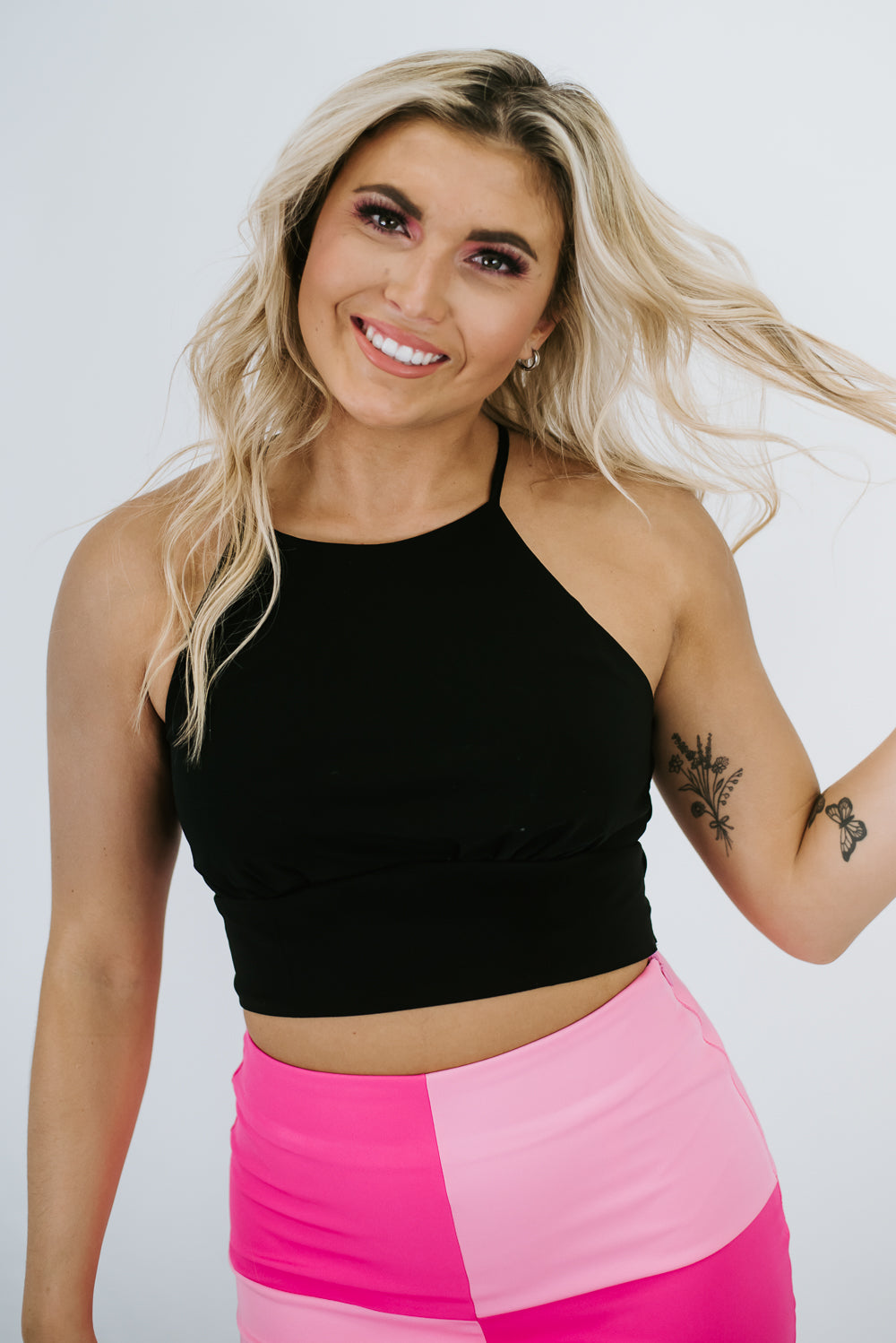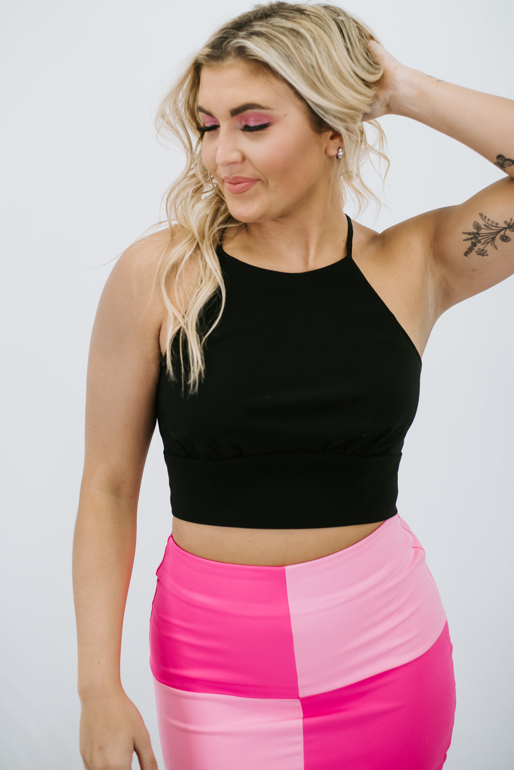 Make an elevated statement in this trend focused top! Featuring an adjustable tie-up open back detail, cropped fit, and slimming rounded neckline.