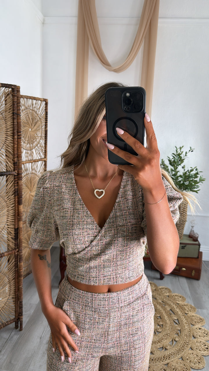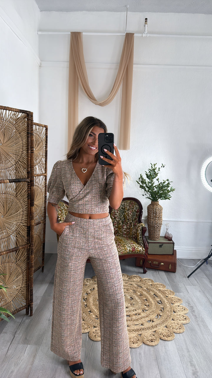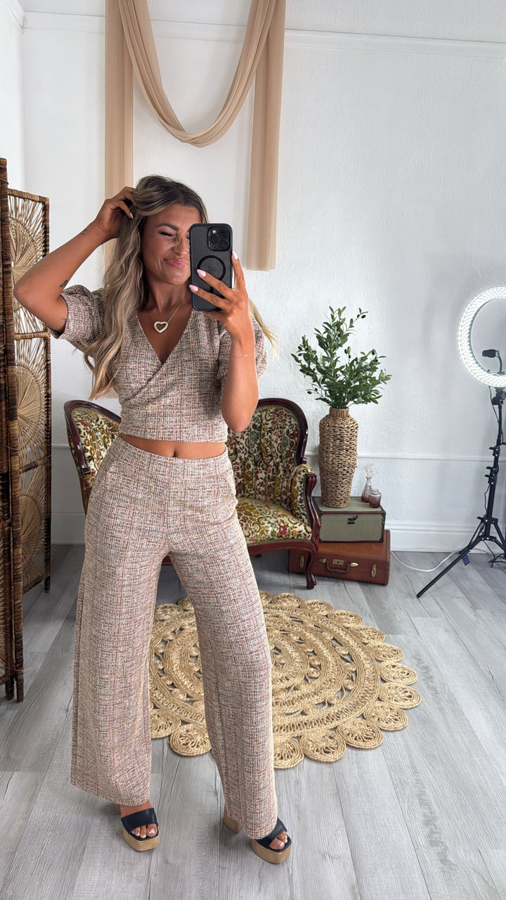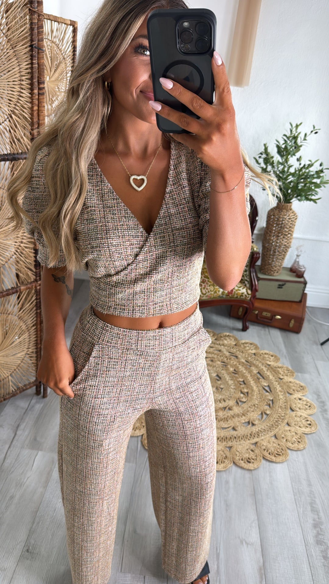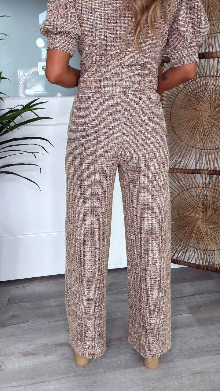 Step into spring with the chic Multicolor Tweed Pant Set – a stylish look that exudes sophistication with a playful twist. This Tweed Pant Set is perfect for any occasion.