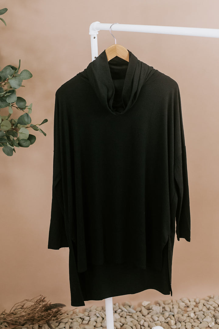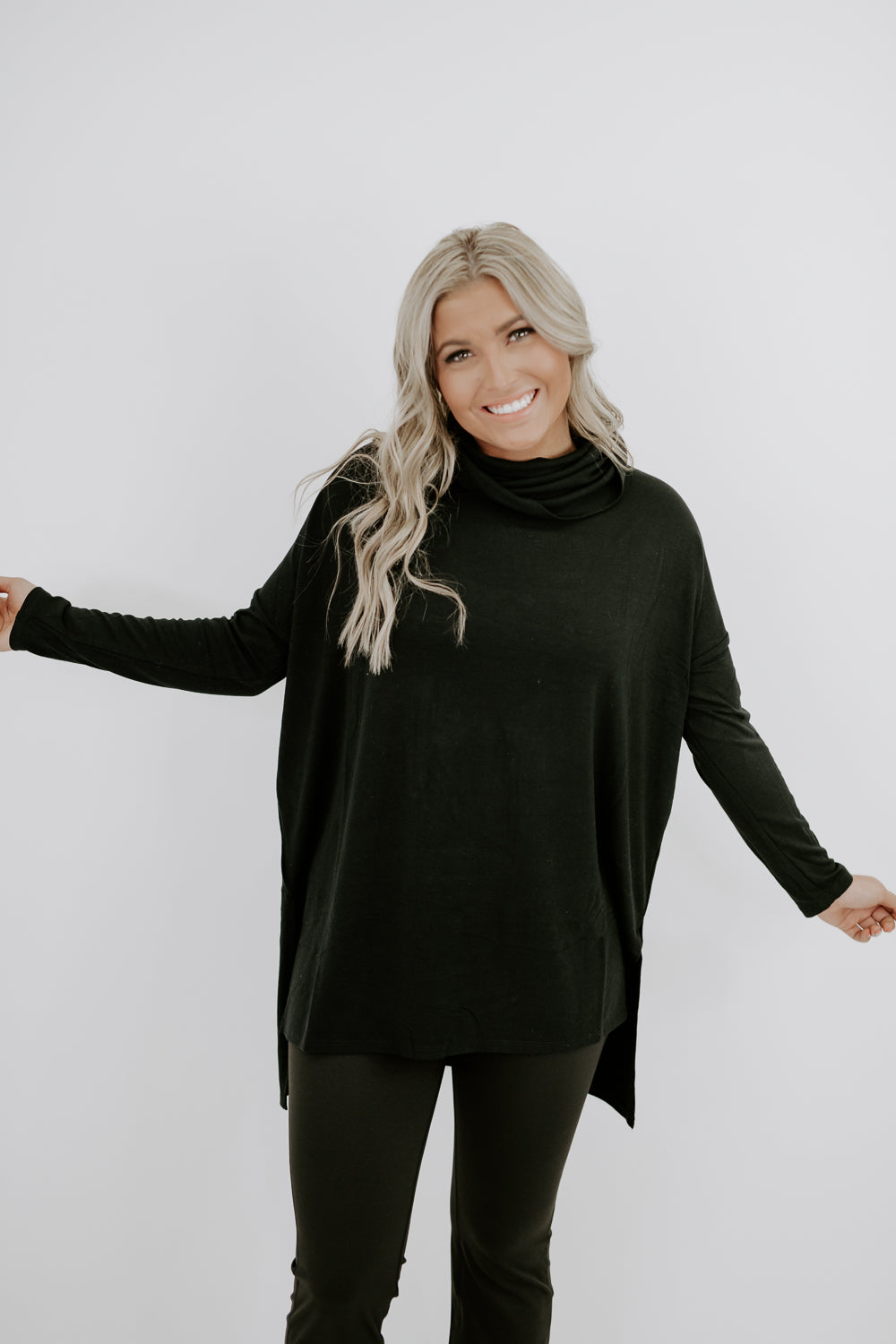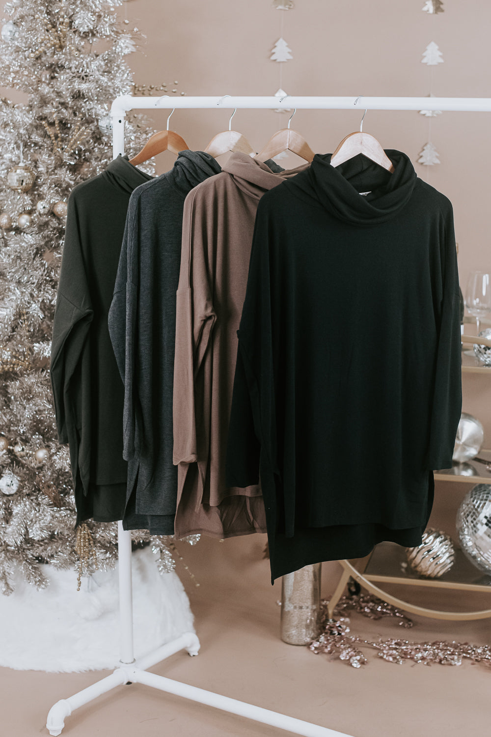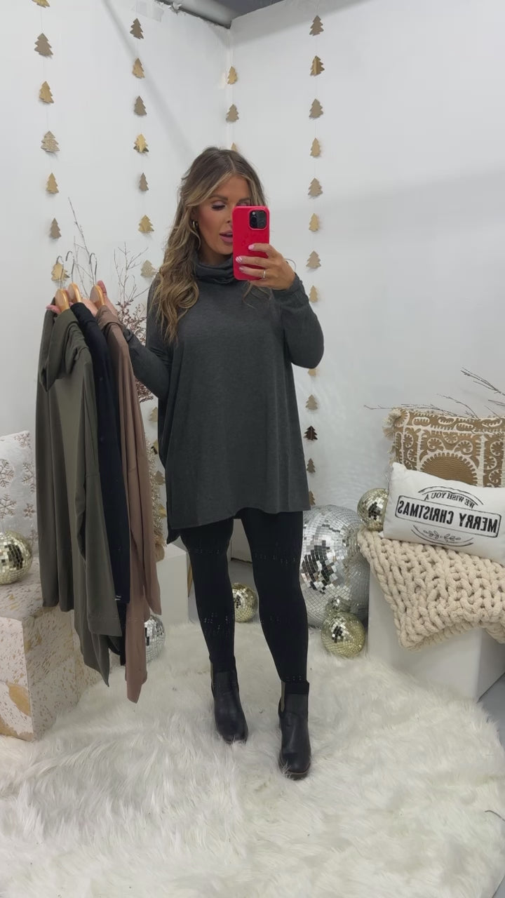 Our Girl On The Go Tunic will keep you on-trend and stylish through the colder months. The oversized fit and high neckline make this piece stylish yet oh so comfortable! A closet essential- perfect for so many occasions!