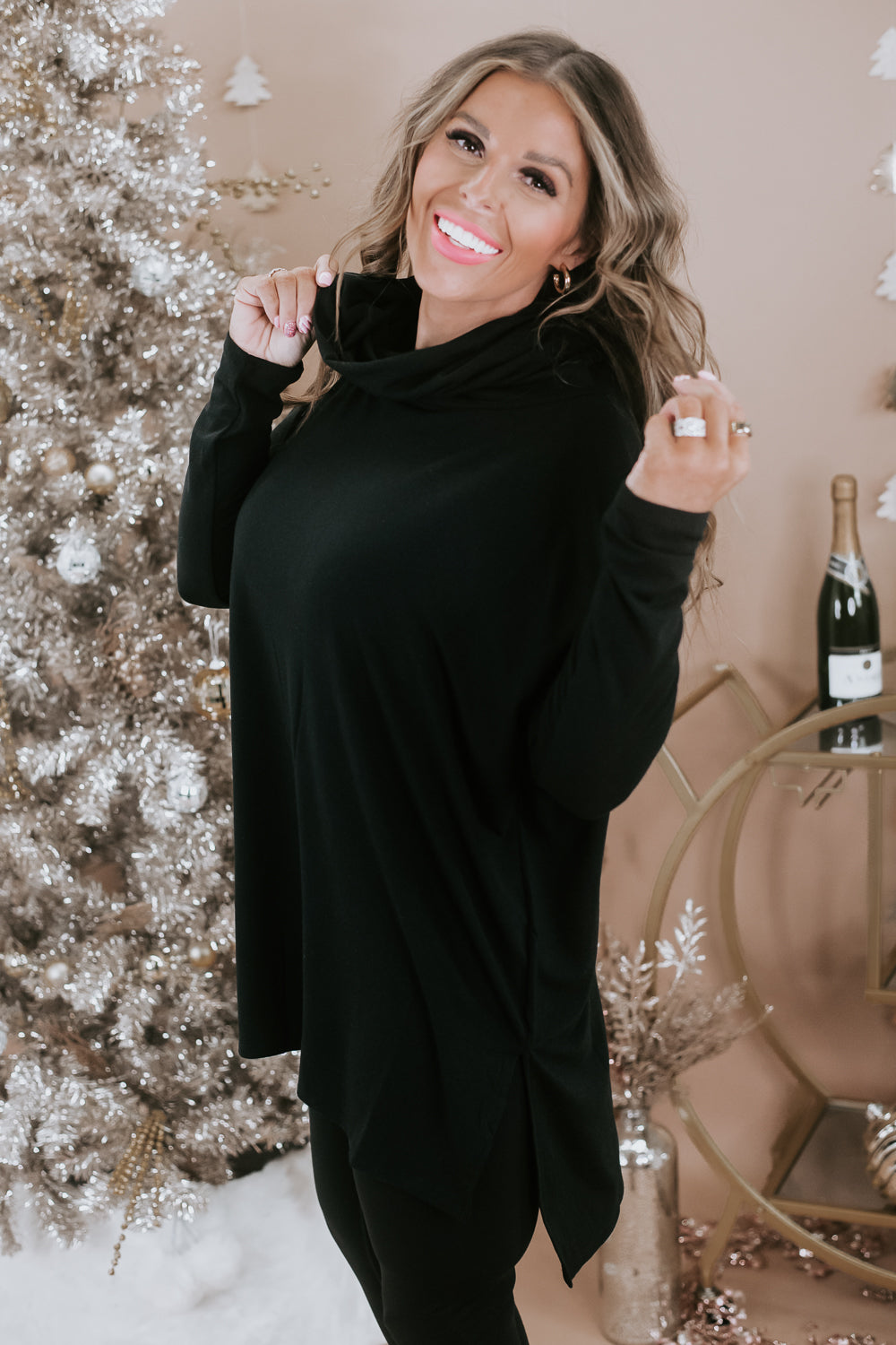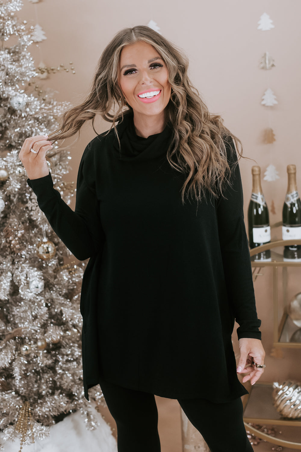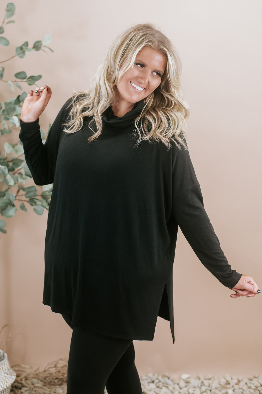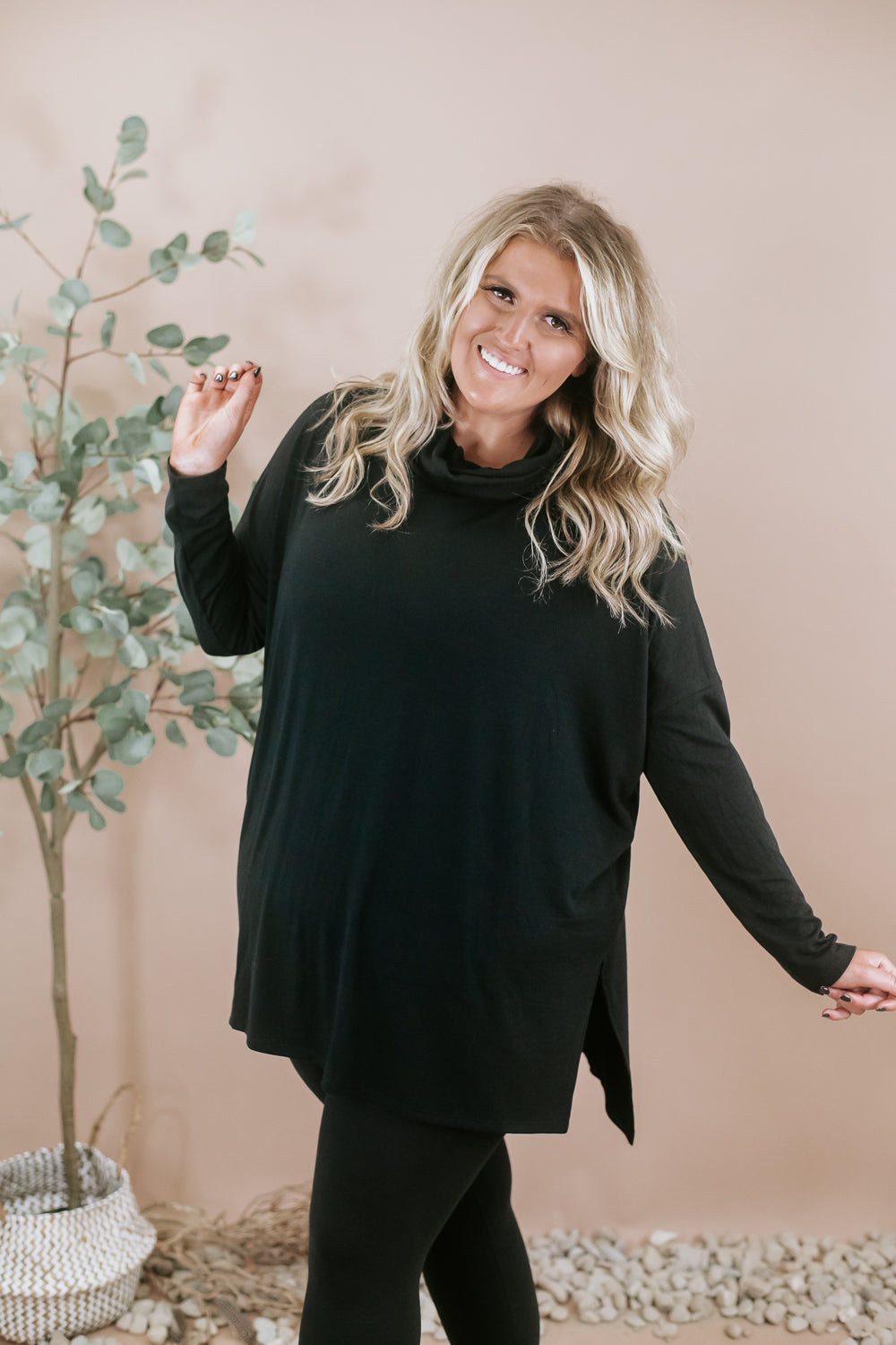 Our Girl On The Go Tunic will keep you on-trend and stylish through the colder months. The oversized fit and high neckline make this piece stylish yet oh so comfortable! A closet essential- perfect for so many occasions!