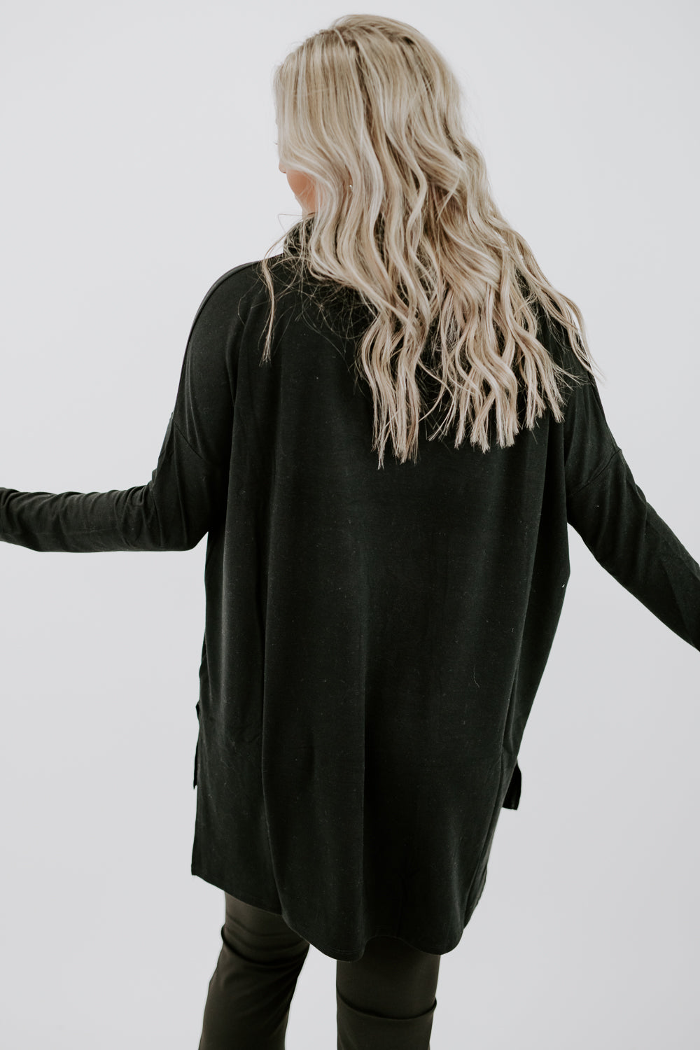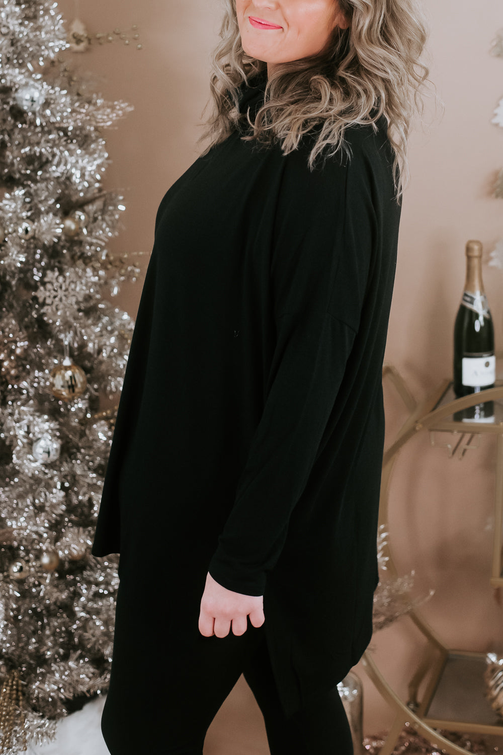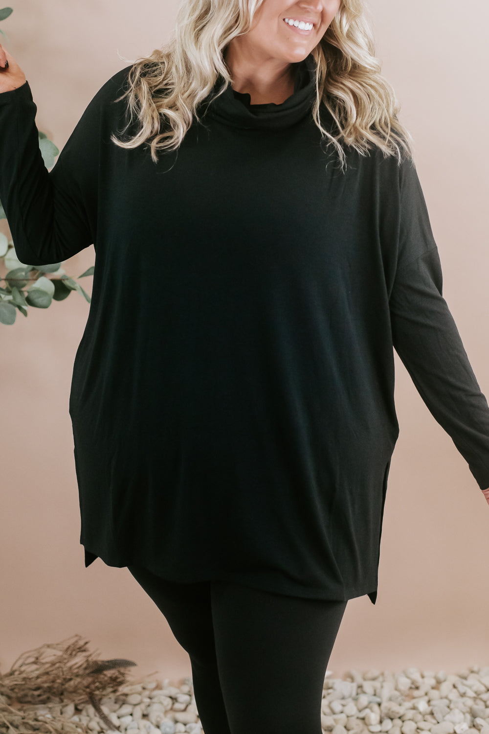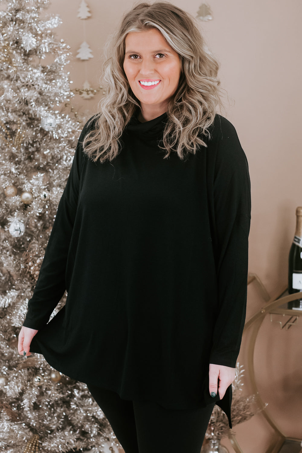 Our Girl On The Go Tunic will keep you on-trend and stylish through the colder months. The oversized fit and high neckline make this piece stylish yet oh so comfortable! A closet essential- perfect for so many occasions!