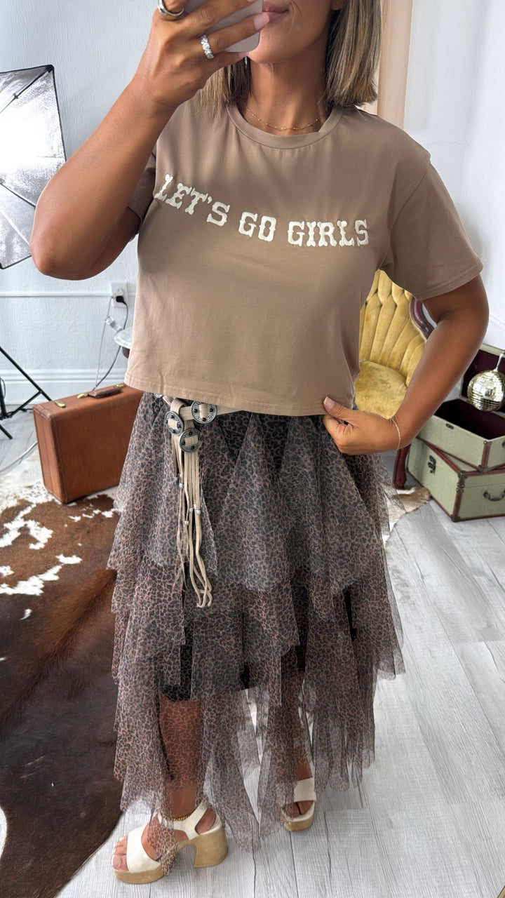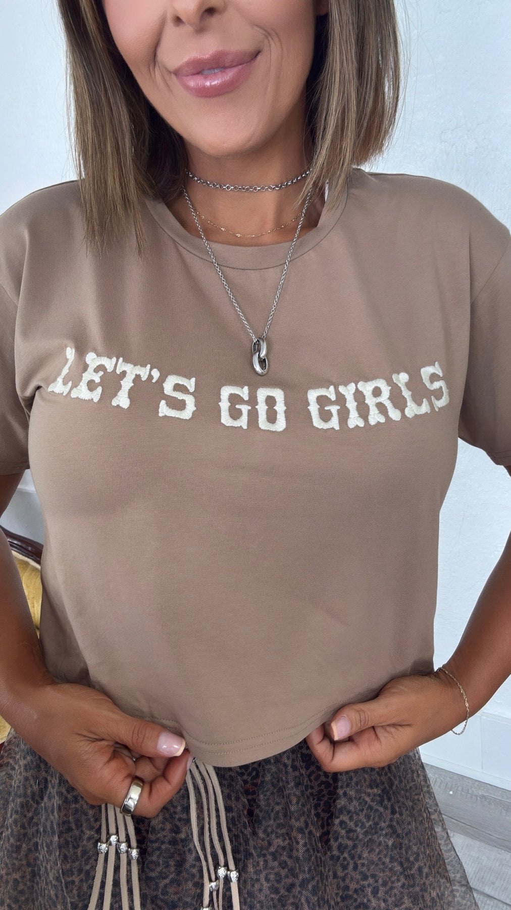 Let's go, girls! The graphic tee that puts a western flair on any look! Featuring a cropped design, embroidered detail & a relaxed fit, this is the ideal graphic tee for all occasions!